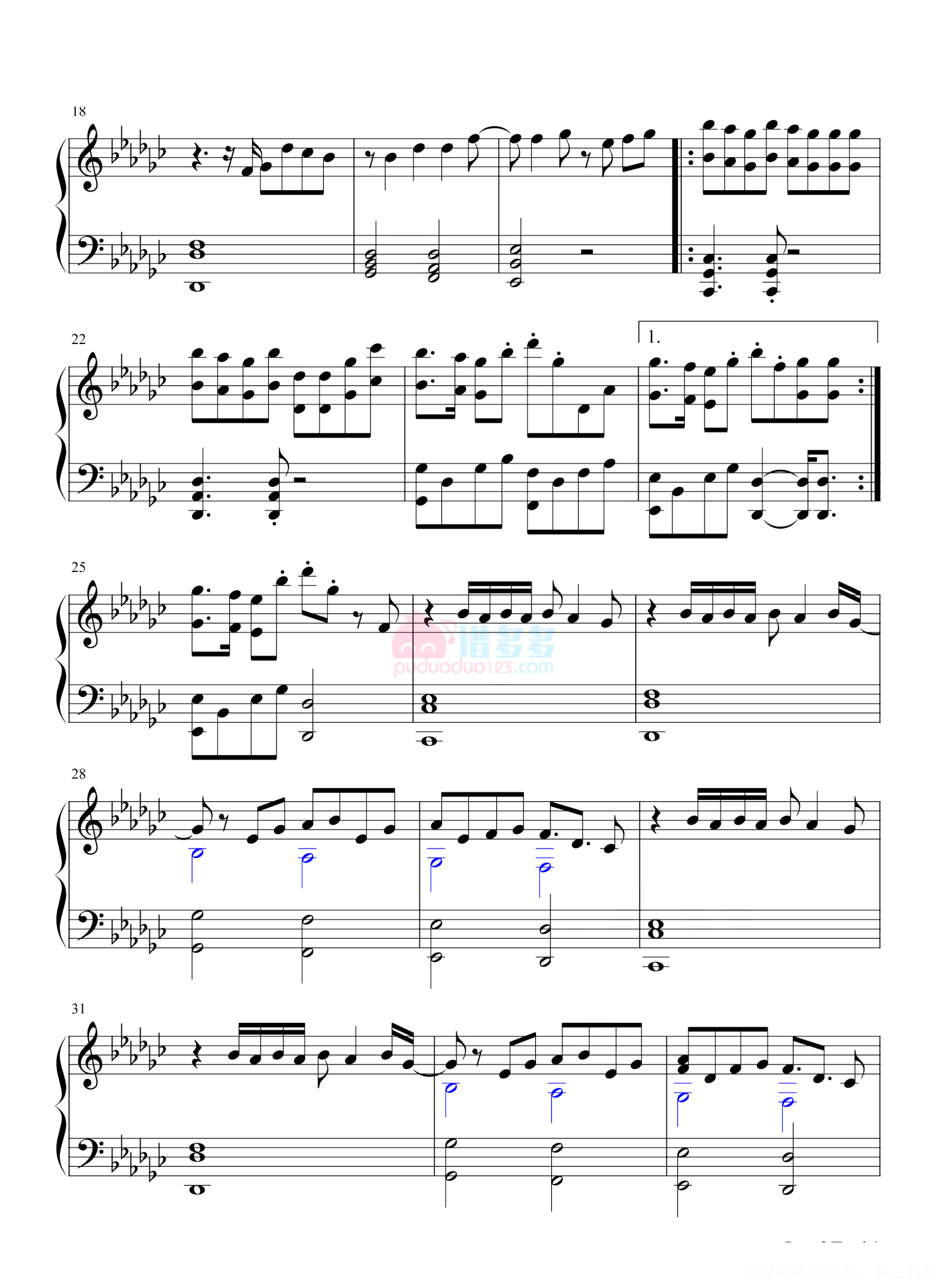 凡是琴谱网站内的版权保护水印,打印时,都会无水印。