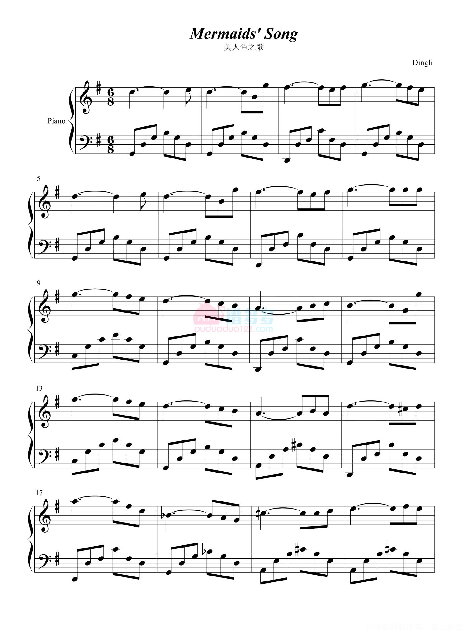 当前位置:琴谱网>钢琴谱>美人鱼之歌