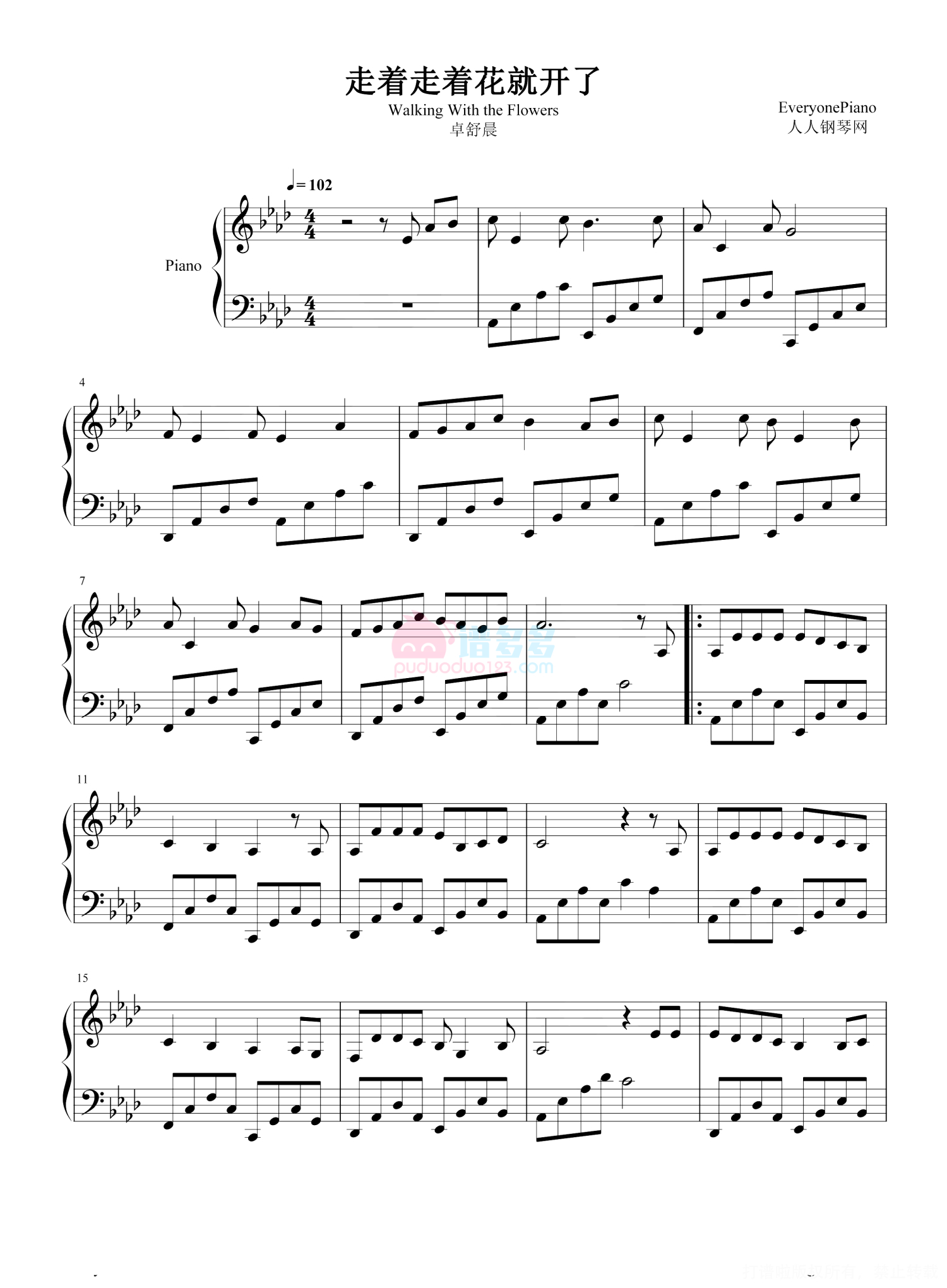 琴谱网为您精心推荐 走着走着花就开了 高清图谱