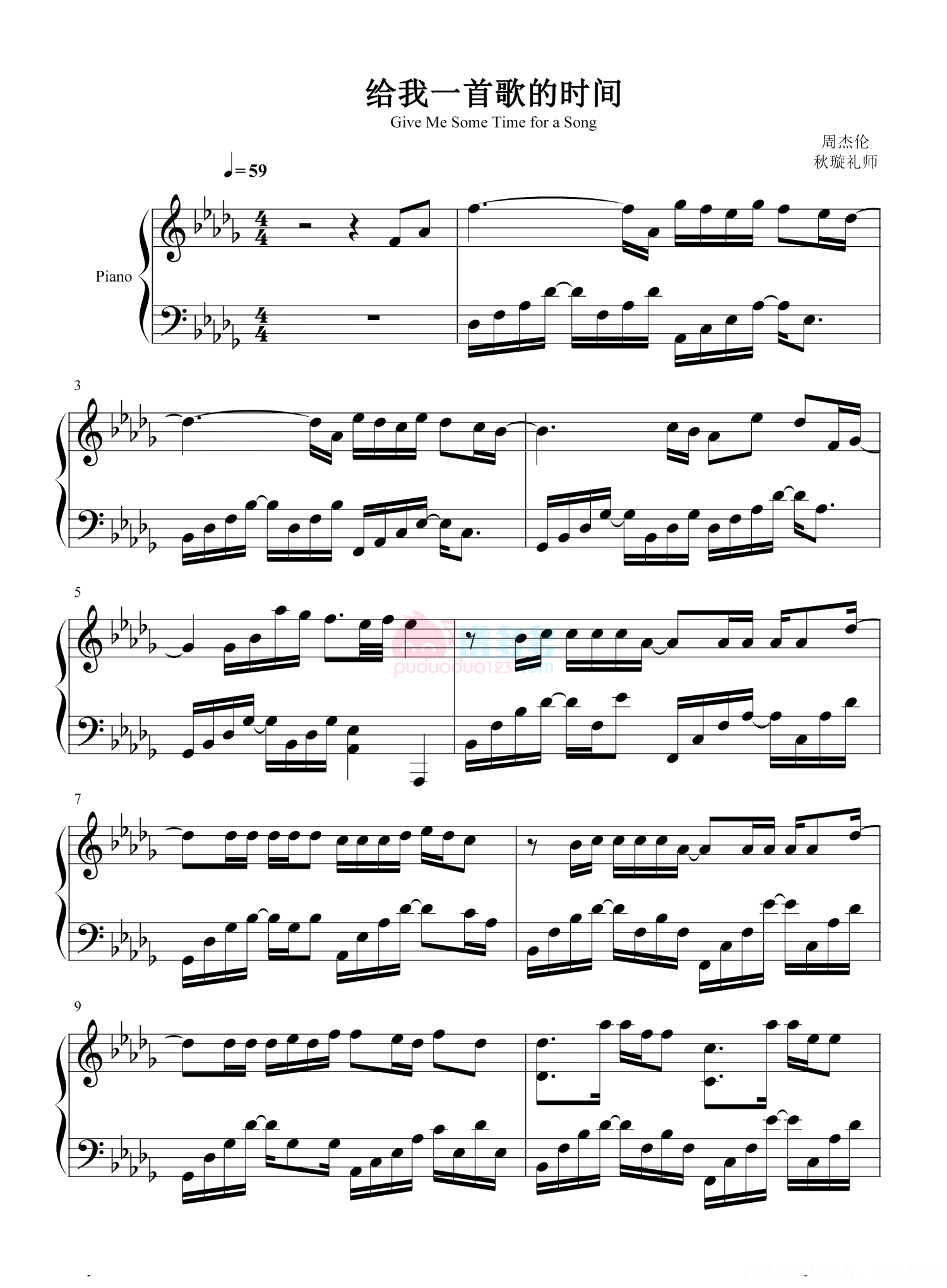 给我一首歌的时间钢琴谱 - 周杰伦