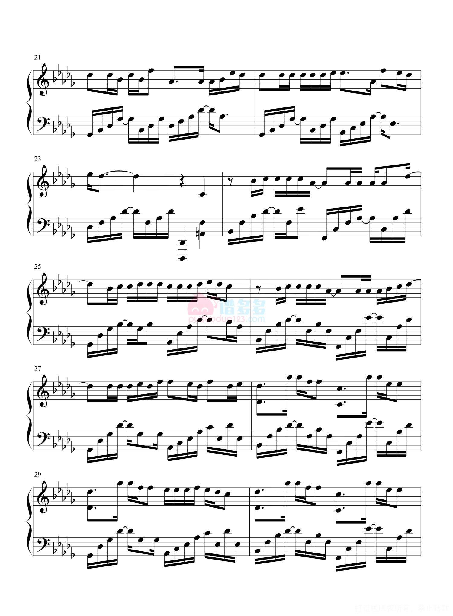 凡是琴谱网站内的版权保护水印,打印时,都会无水印。