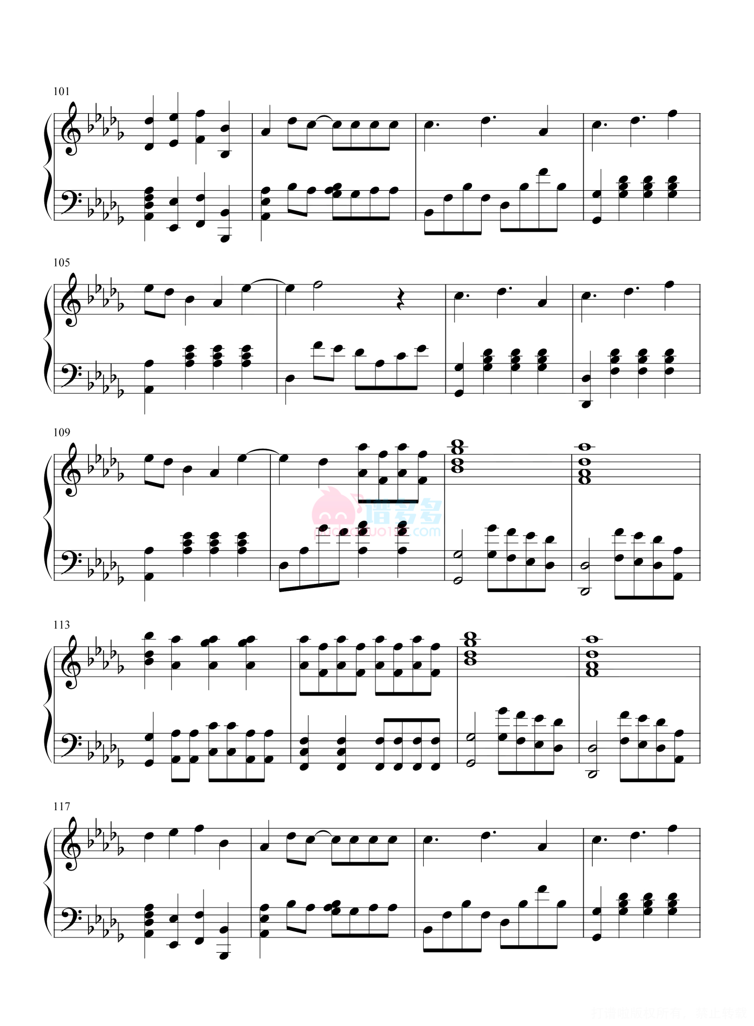 凡是琴谱网站内的版权保护水印,打印时,都会无水印。