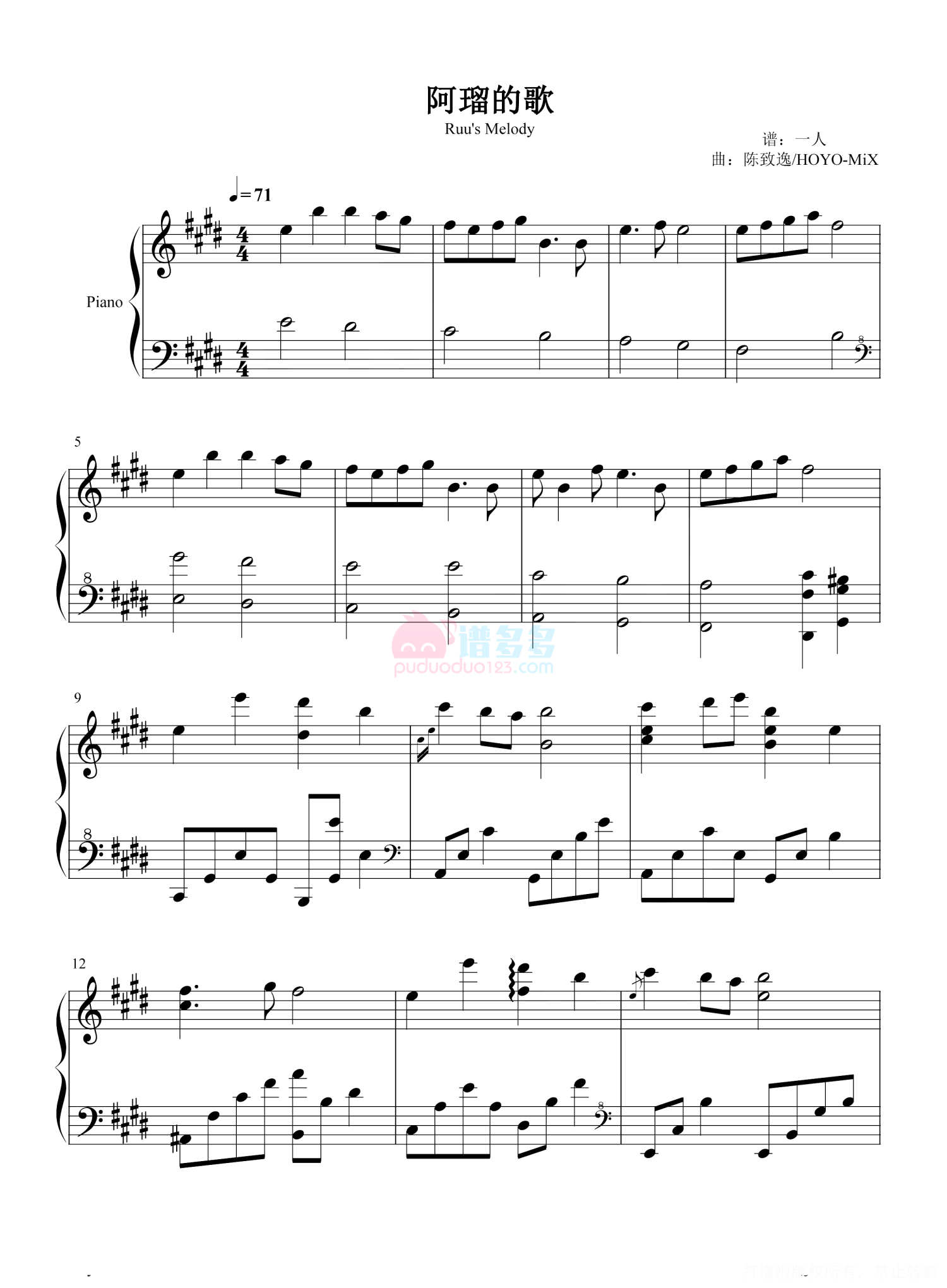 阿瑠的歌钢琴谱 - 陈致逸/HOYO-MiX