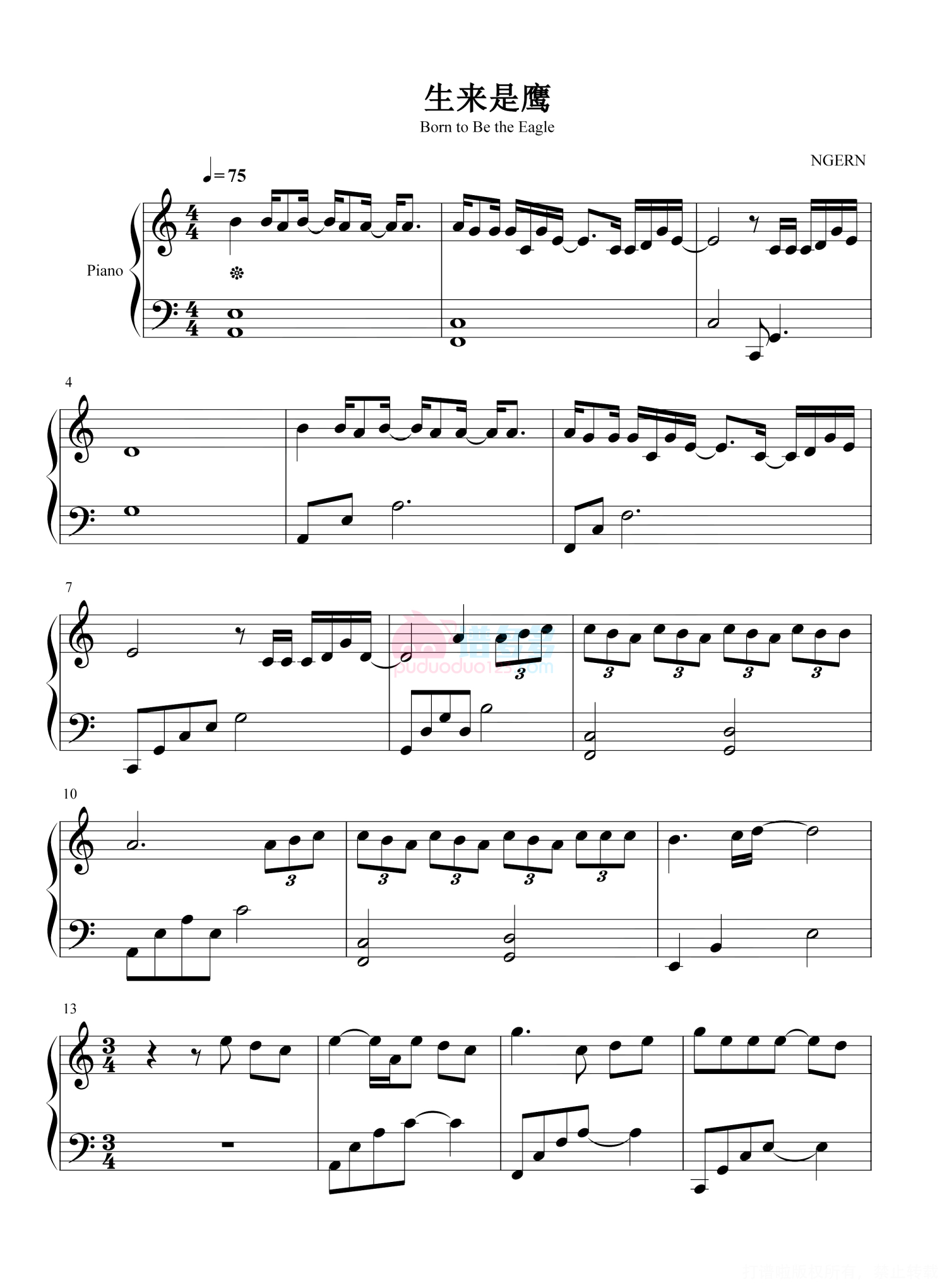 当前位置:琴谱网>钢琴谱>生来是鹰