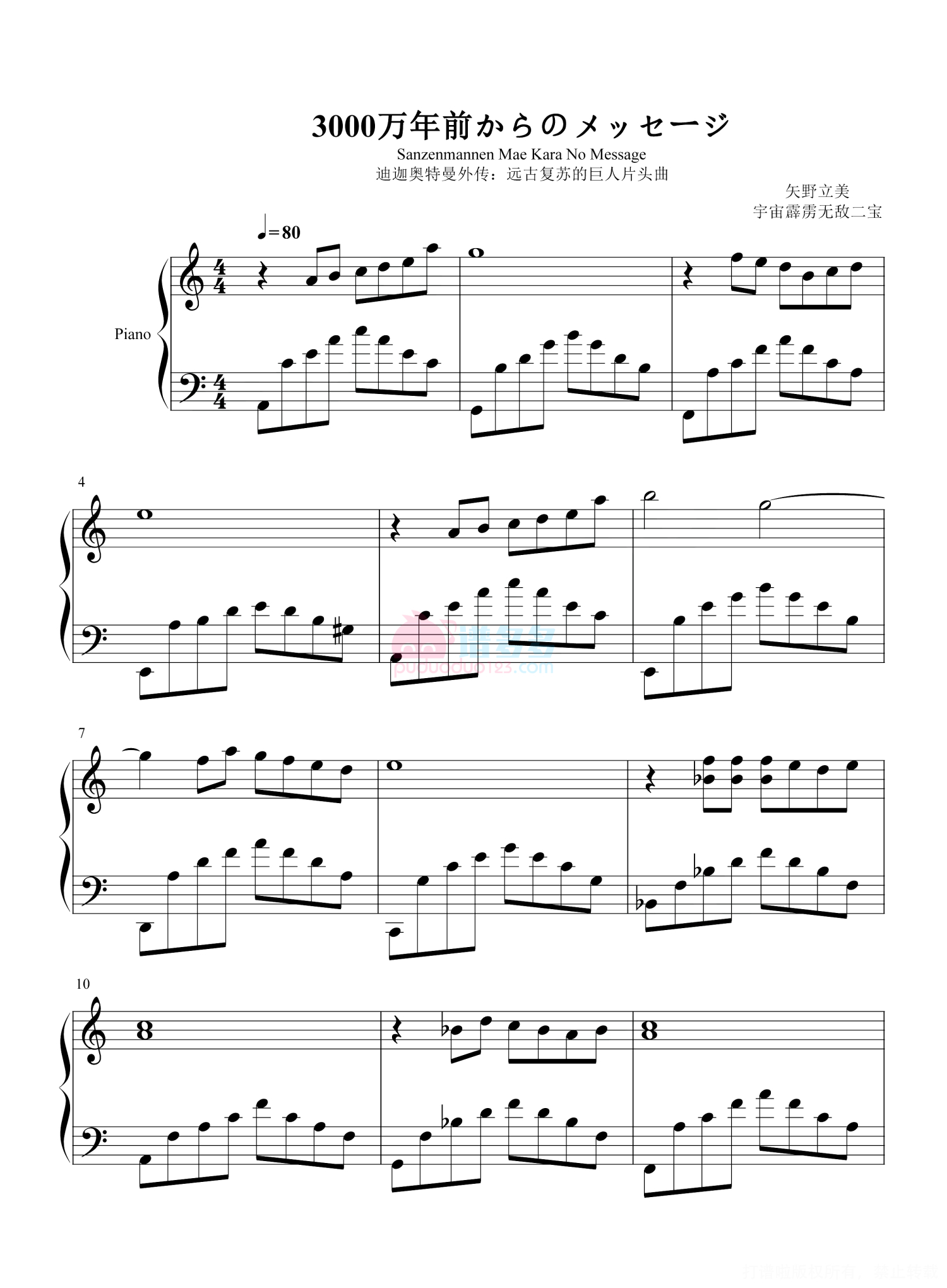 曲谱介绍: 矢野立美《3000万年前からのメッセージ》钢琴谱,共有3张高清图谱。