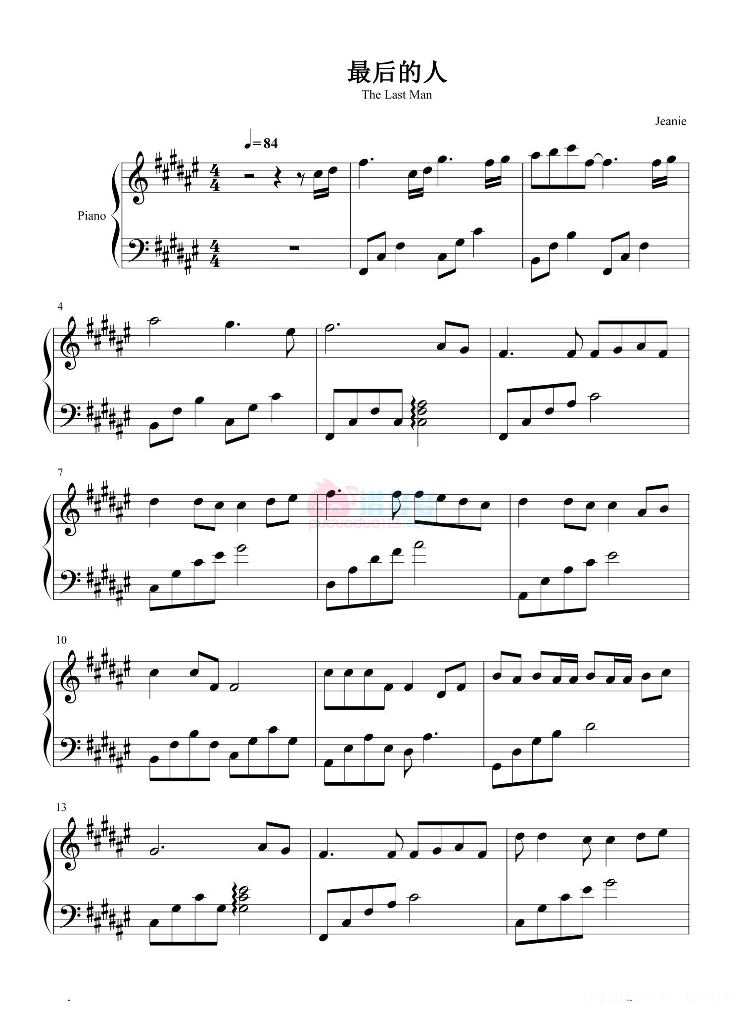 当前位置:琴谱网>钢琴谱>最后的人