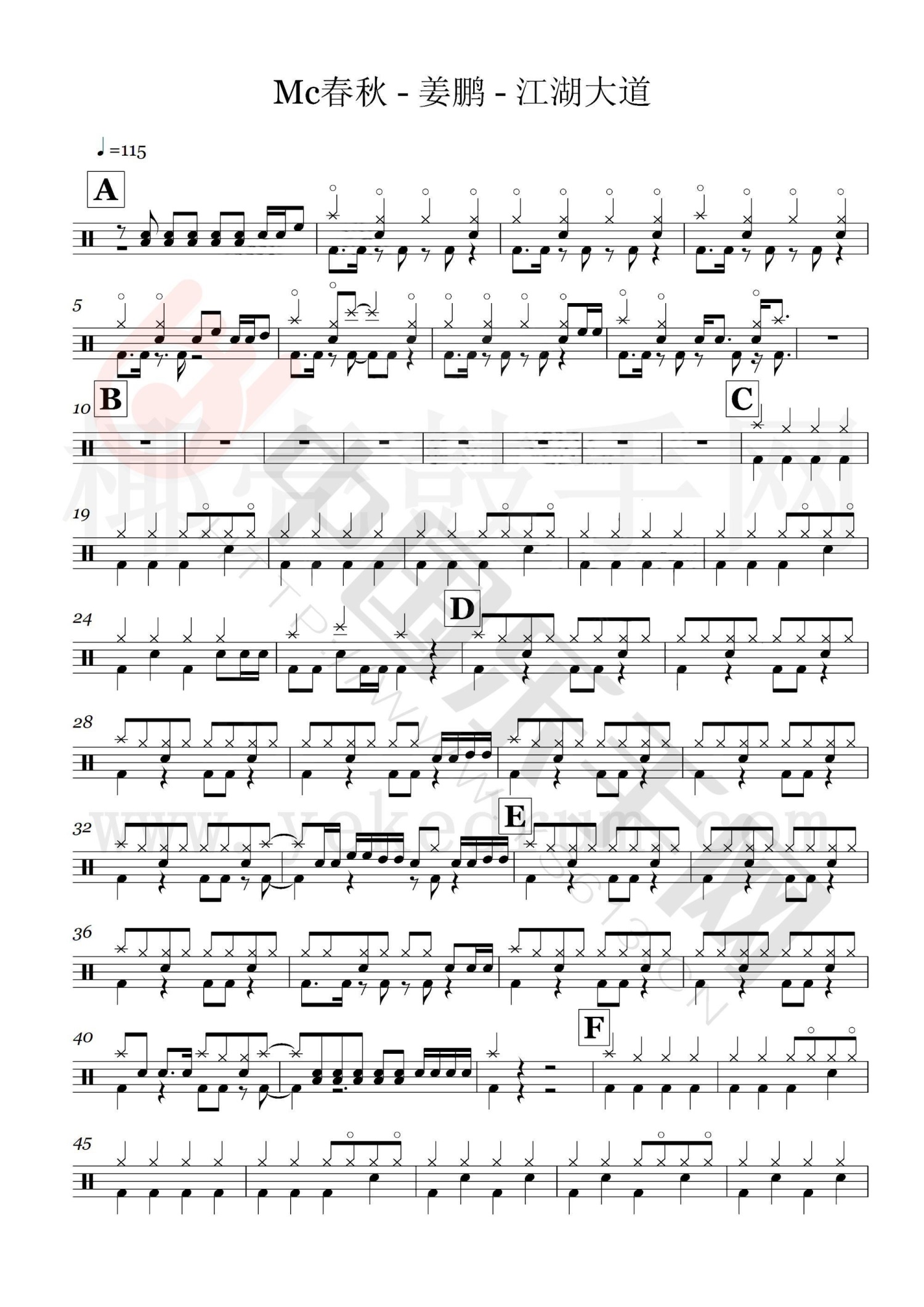 江湖大道鼓谱 - Mc春秋-姜鹏 - 架子鼓谱