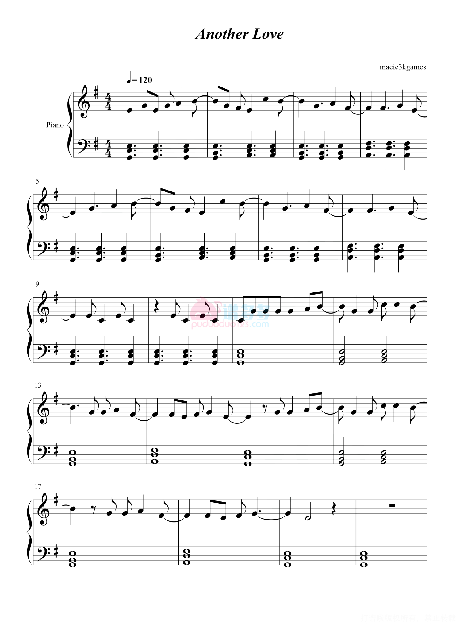 当前位置:琴谱网>钢琴谱>Another Love