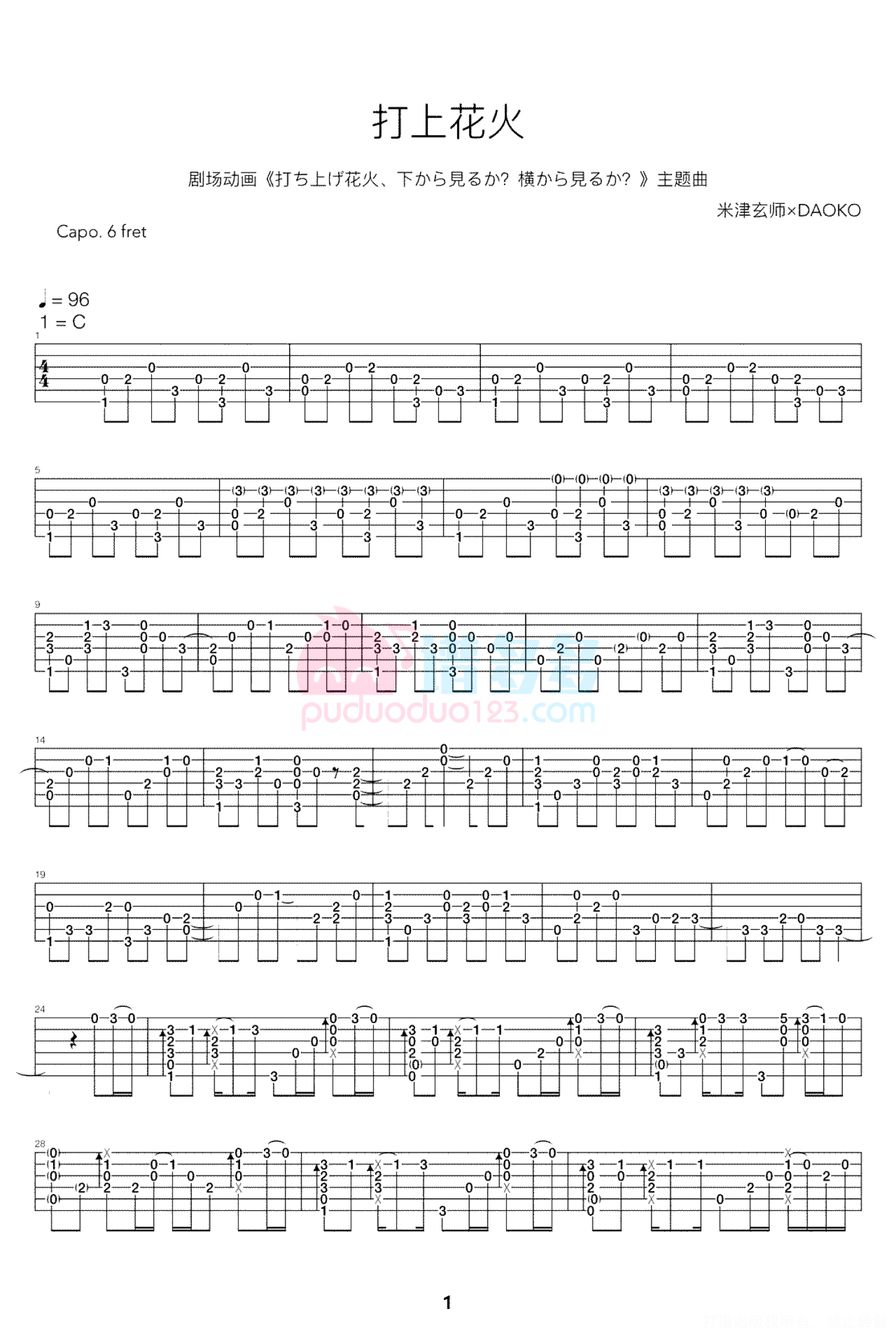打上花火吉他谱 - 米津玄师/DAOKO - 吉他独奏谱