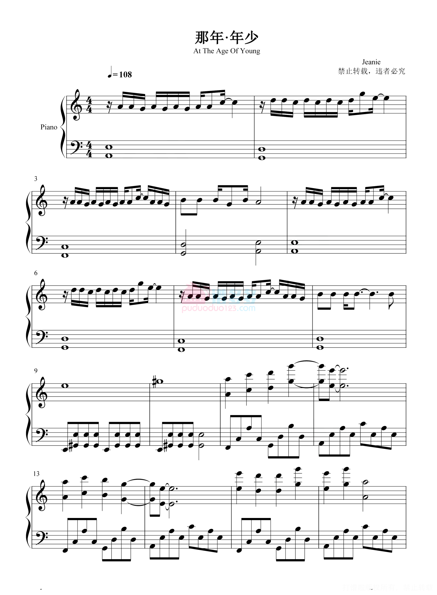 当前位置:琴谱网>钢琴谱>那年.年少