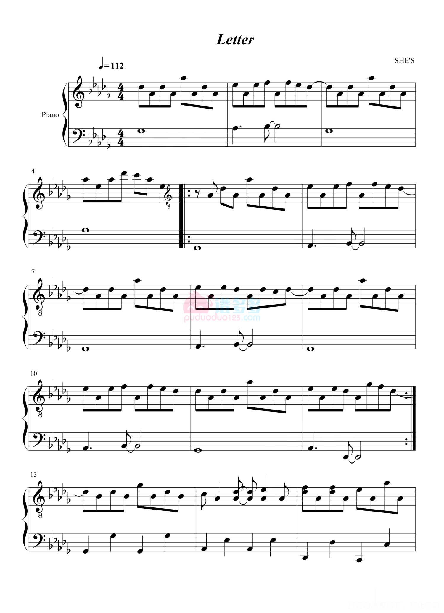 曲谱介绍: 《Letter》是任天堂《集合啦!动物森友会》CM广告曲,由日本4人组钢琴摇滚乐队SHE'S(シーズ)演唱。声线温柔,歌曲治愈,歌词和MV却带着温暖的一丝伤感。 「动森」系列最新作《 集合啦!动物森友会 Animal Crossing》是任天堂旗下的口碑系列之一。游戏中有着丰富的内容有待发现,且大量的乐趣来源于玩家自己的探索。