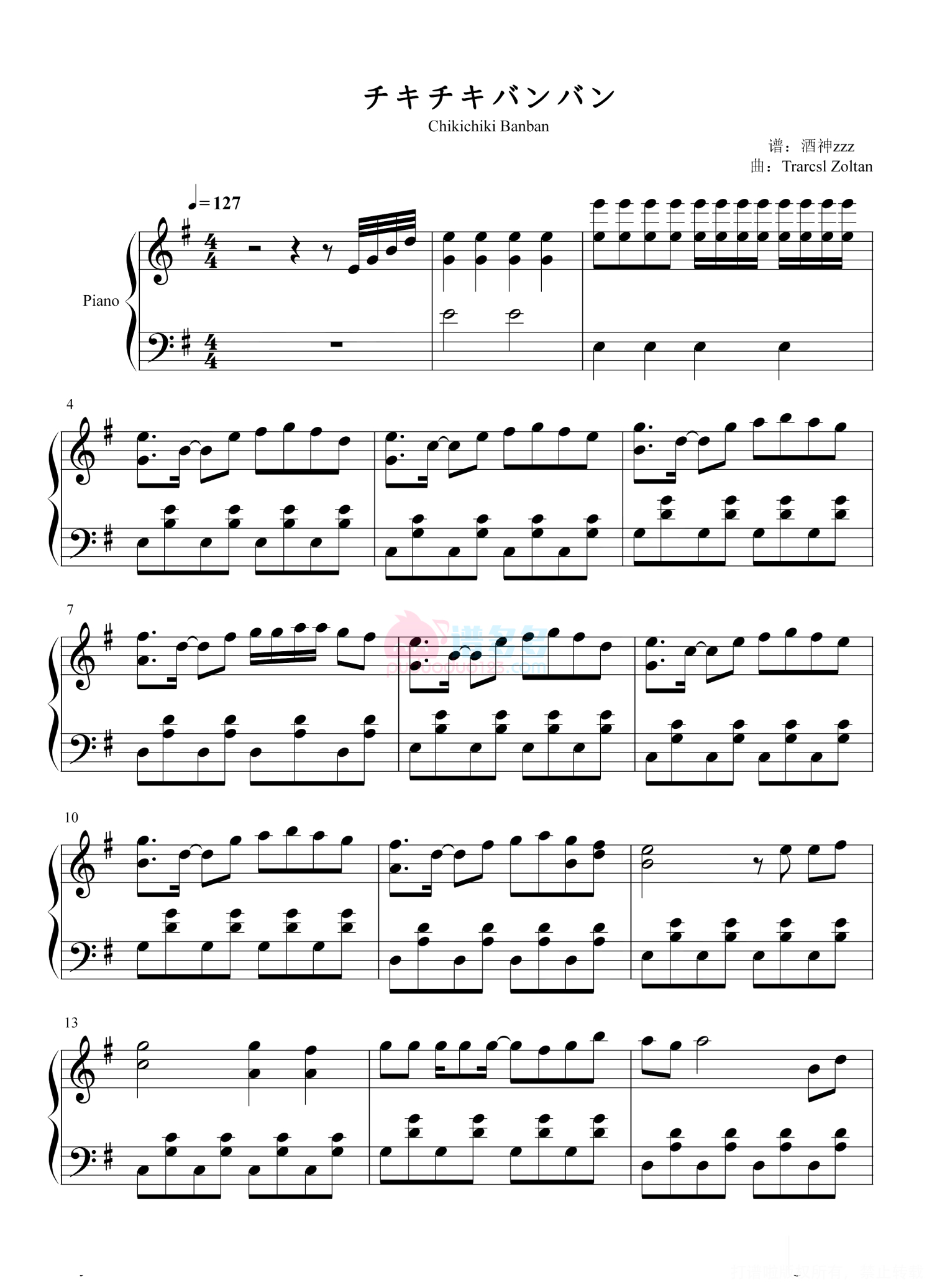 当前位置:琴谱网>钢琴谱>チキチキバンバン
