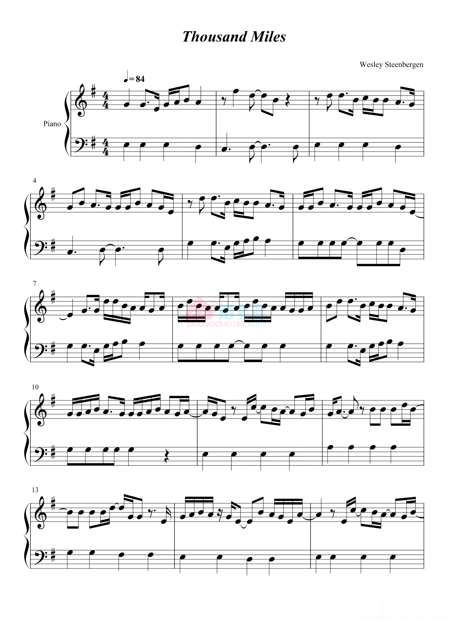 当前位置:琴谱网>钢琴谱>Thousand Miles