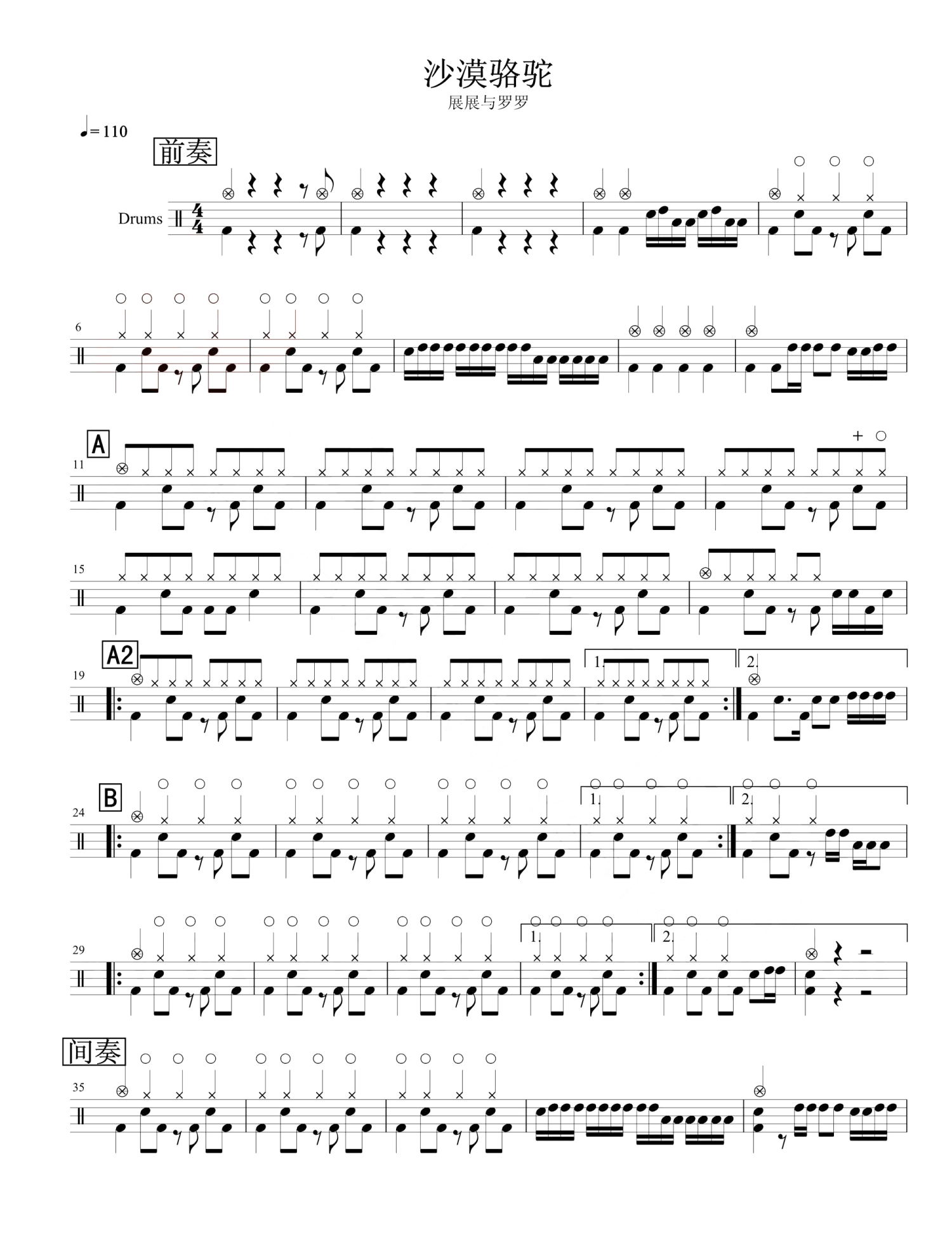 沙漠骆驼鼓谱 - 展展/罗罗 - 架子鼓谱