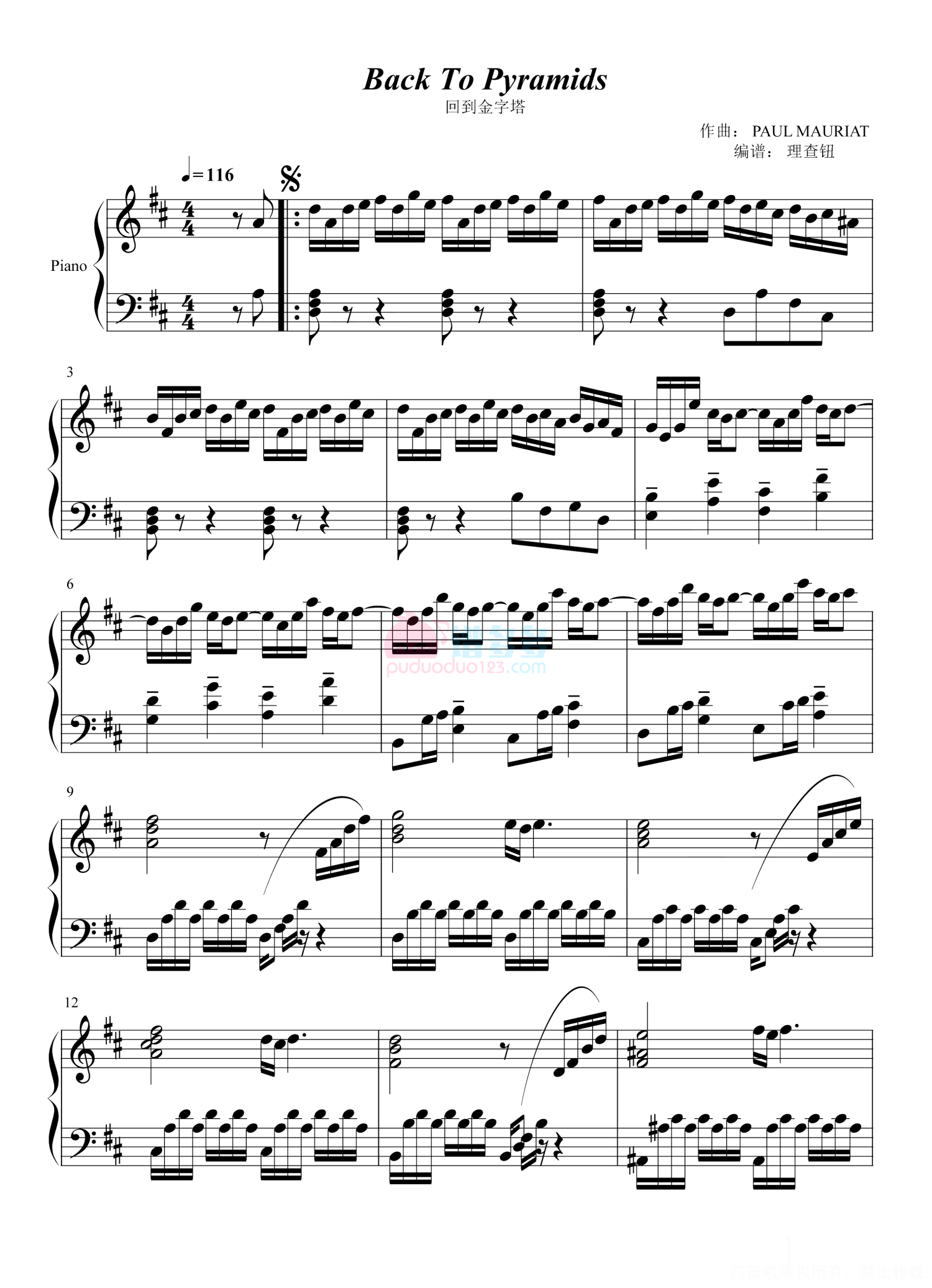 Back To Pyramids钢琴谱 - Paul Mauriat