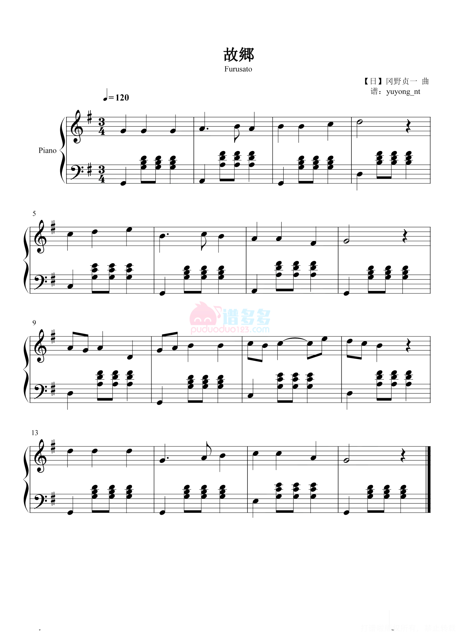 故乡钢琴谱 - 冈野贞一