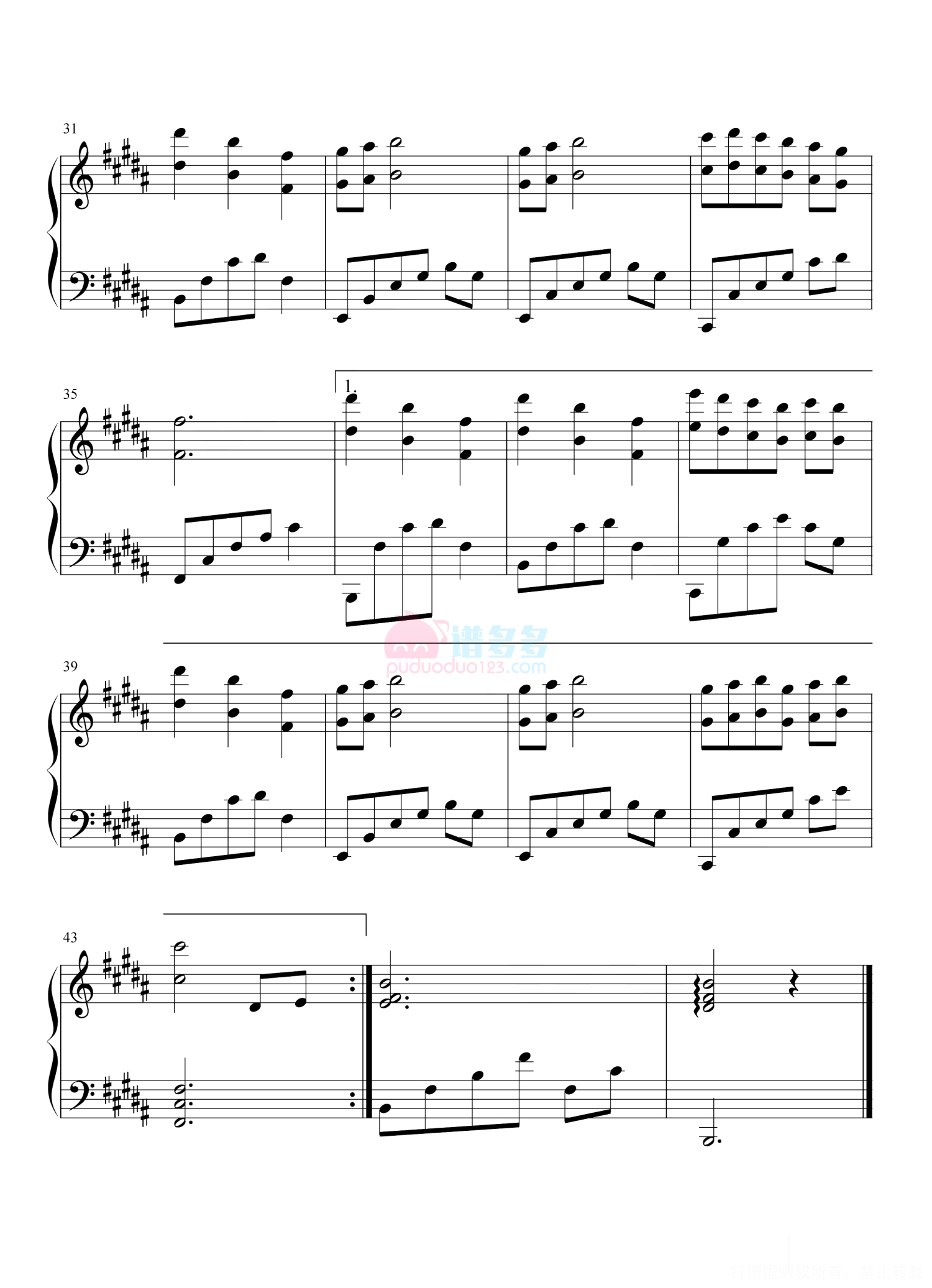 凡是琴谱网站内的版权保护水印,打印时,都会无水印。