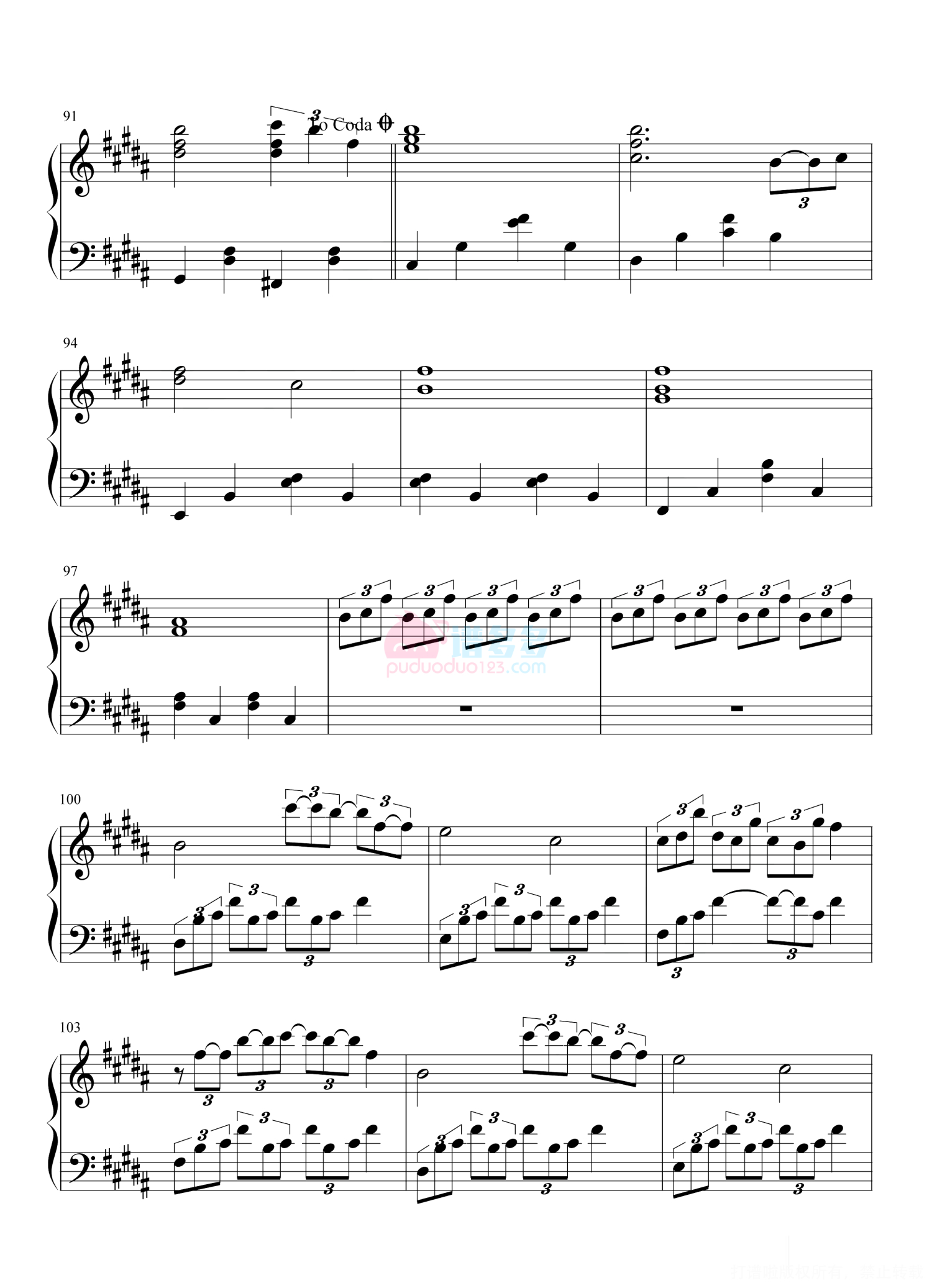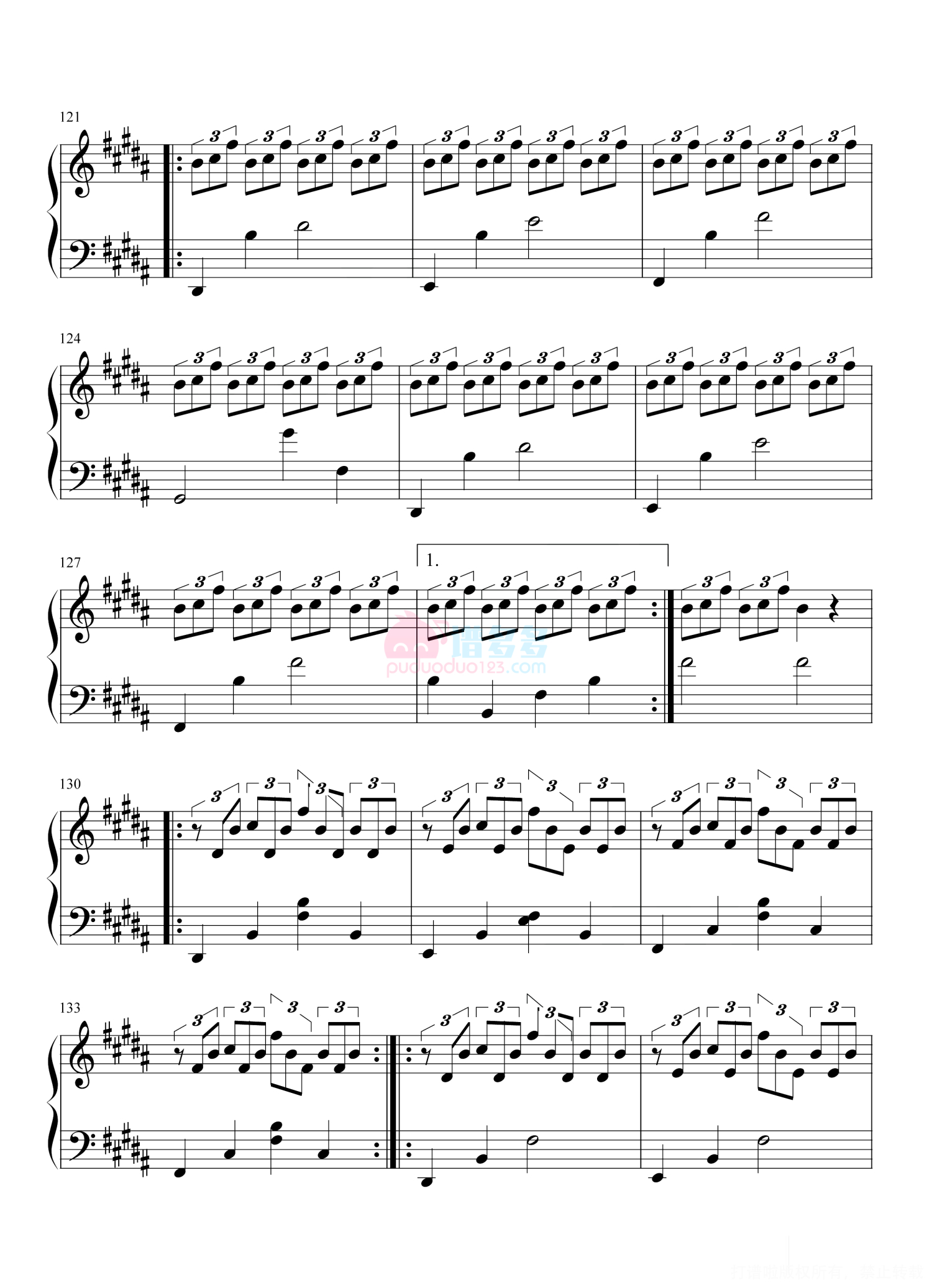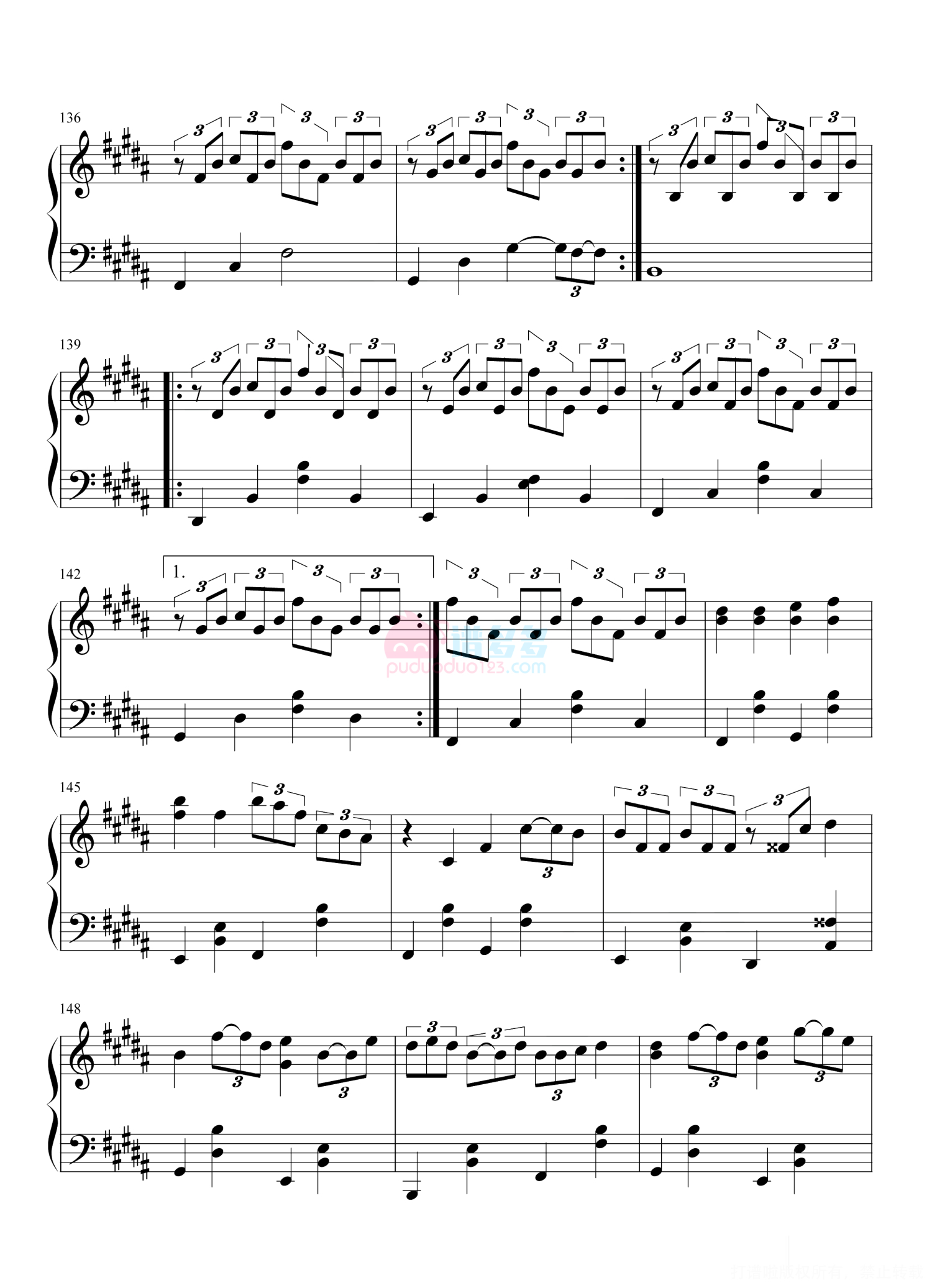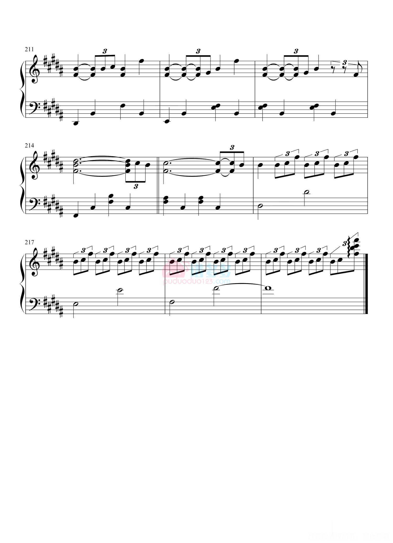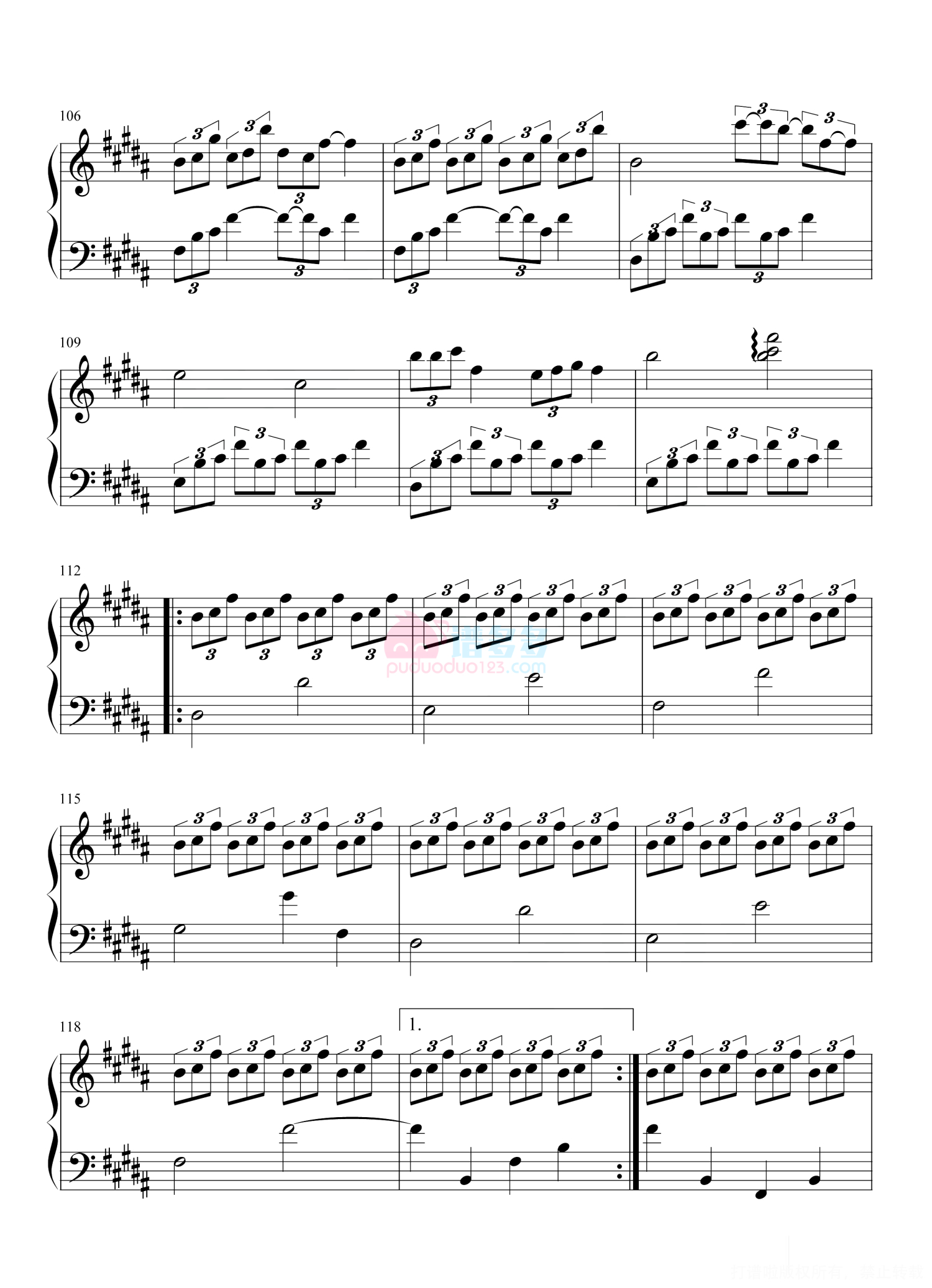 凡是琴谱网站内的版权保护水印,打印时,都会无水印。