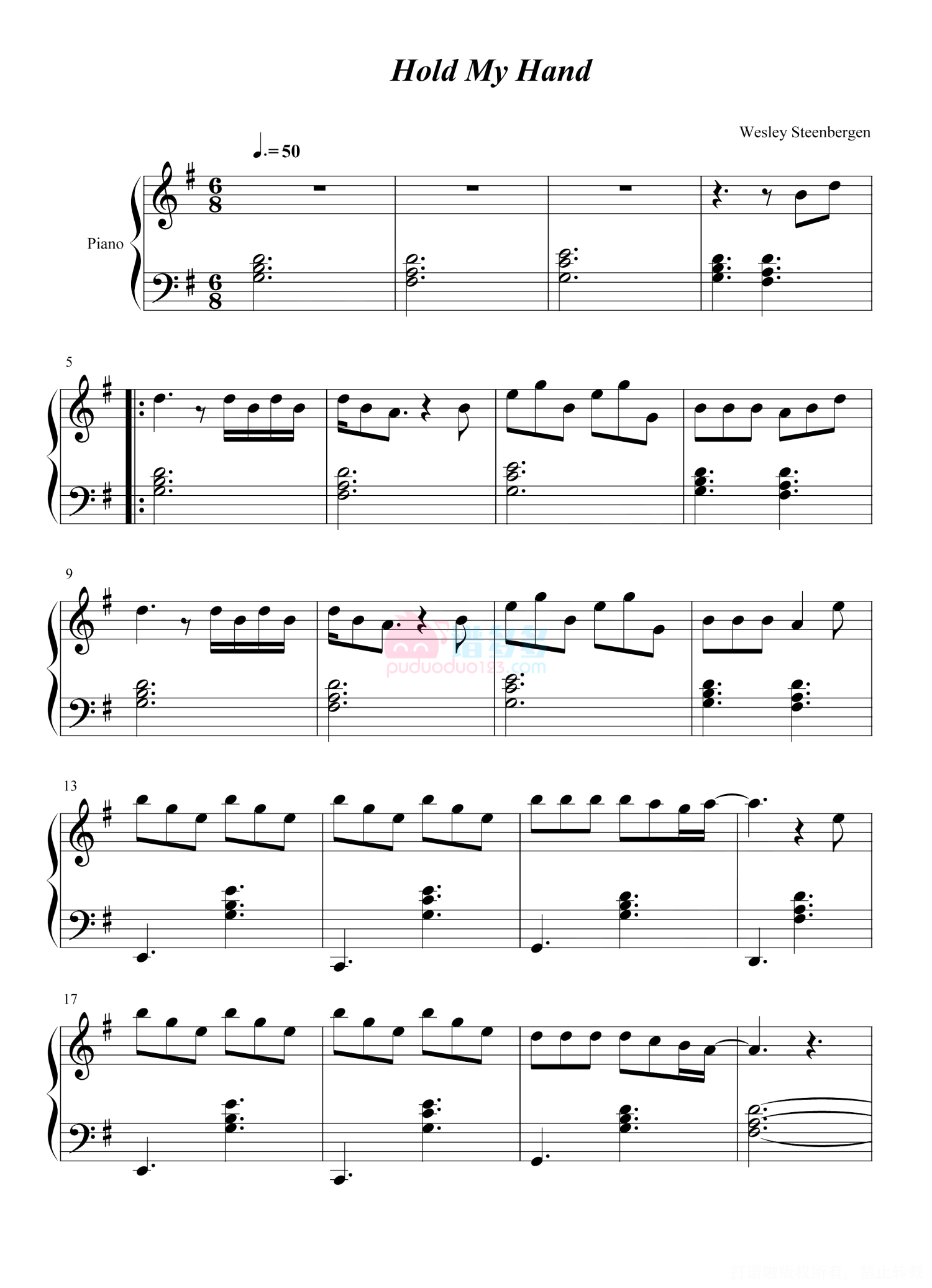 当前位置:琴谱网>钢琴谱>Hold My Hand