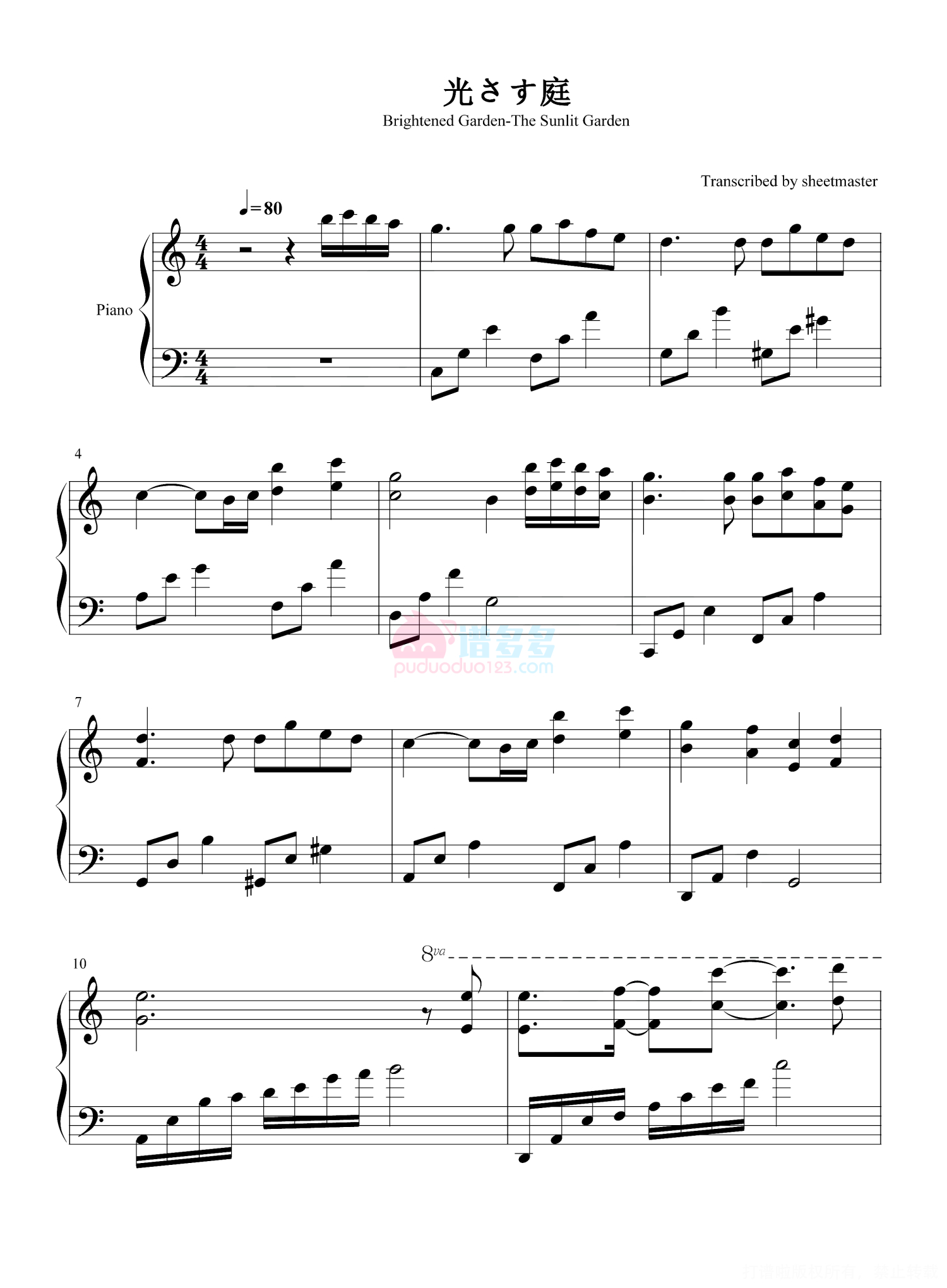 光さす庭钢琴谱 - Brightened Garden