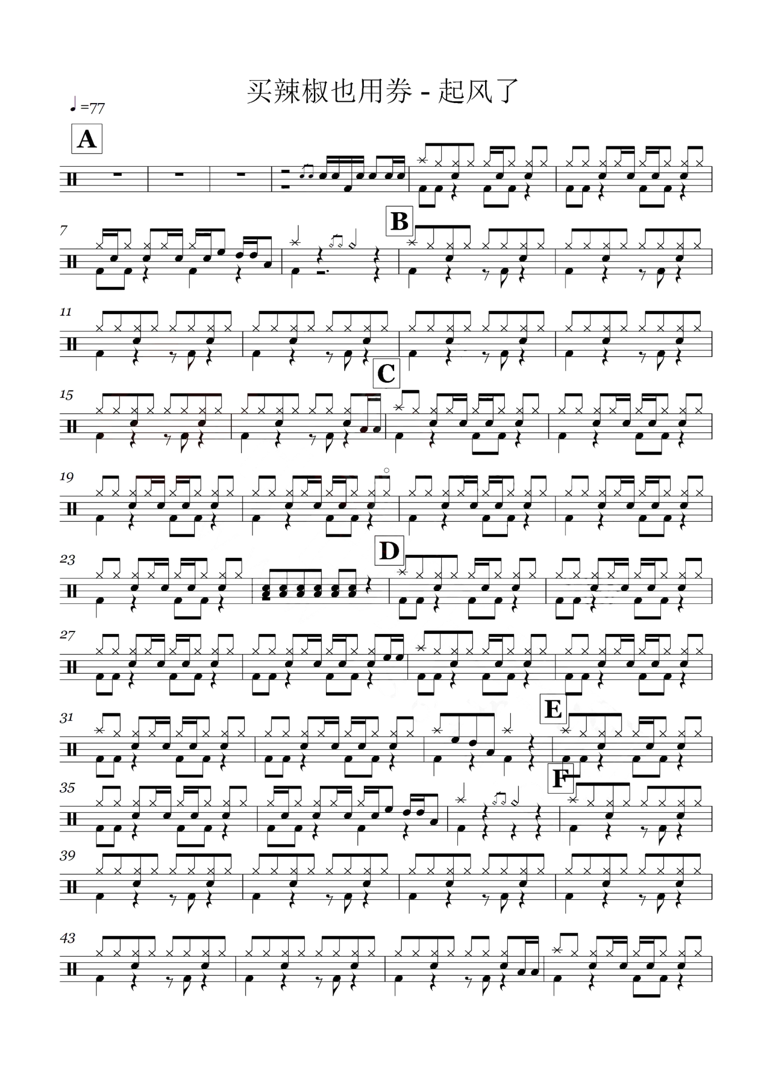 起风了鼓谱 - 买辣椒也用券 - 架子鼓谱