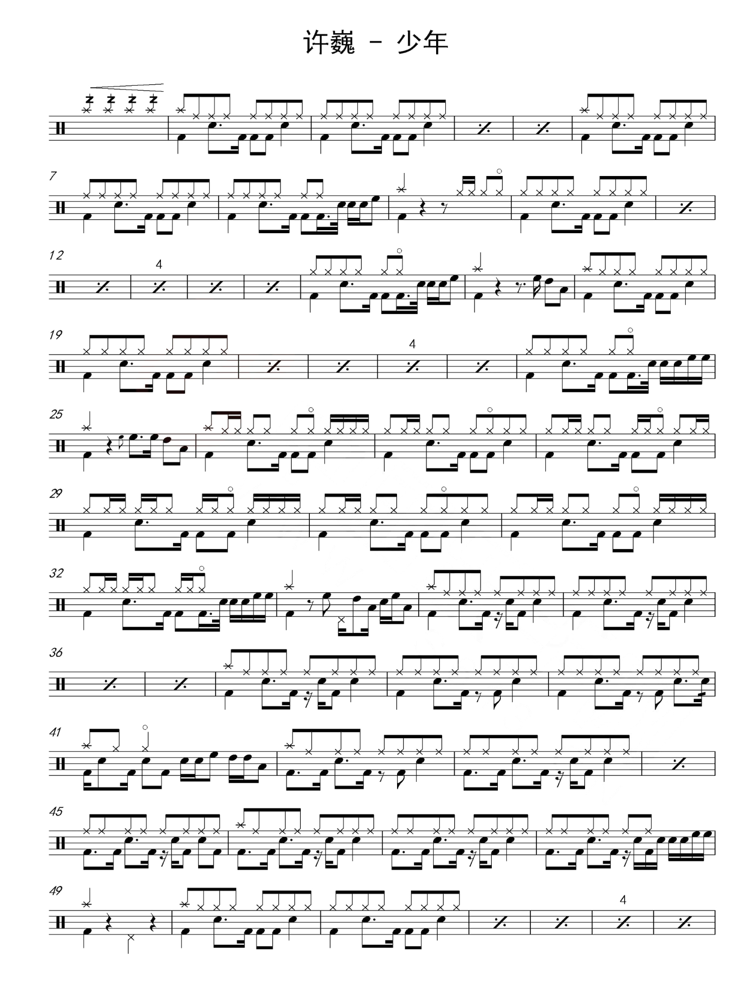 • 少年鼓谱 - 许巍 - 架子鼓谱第1张