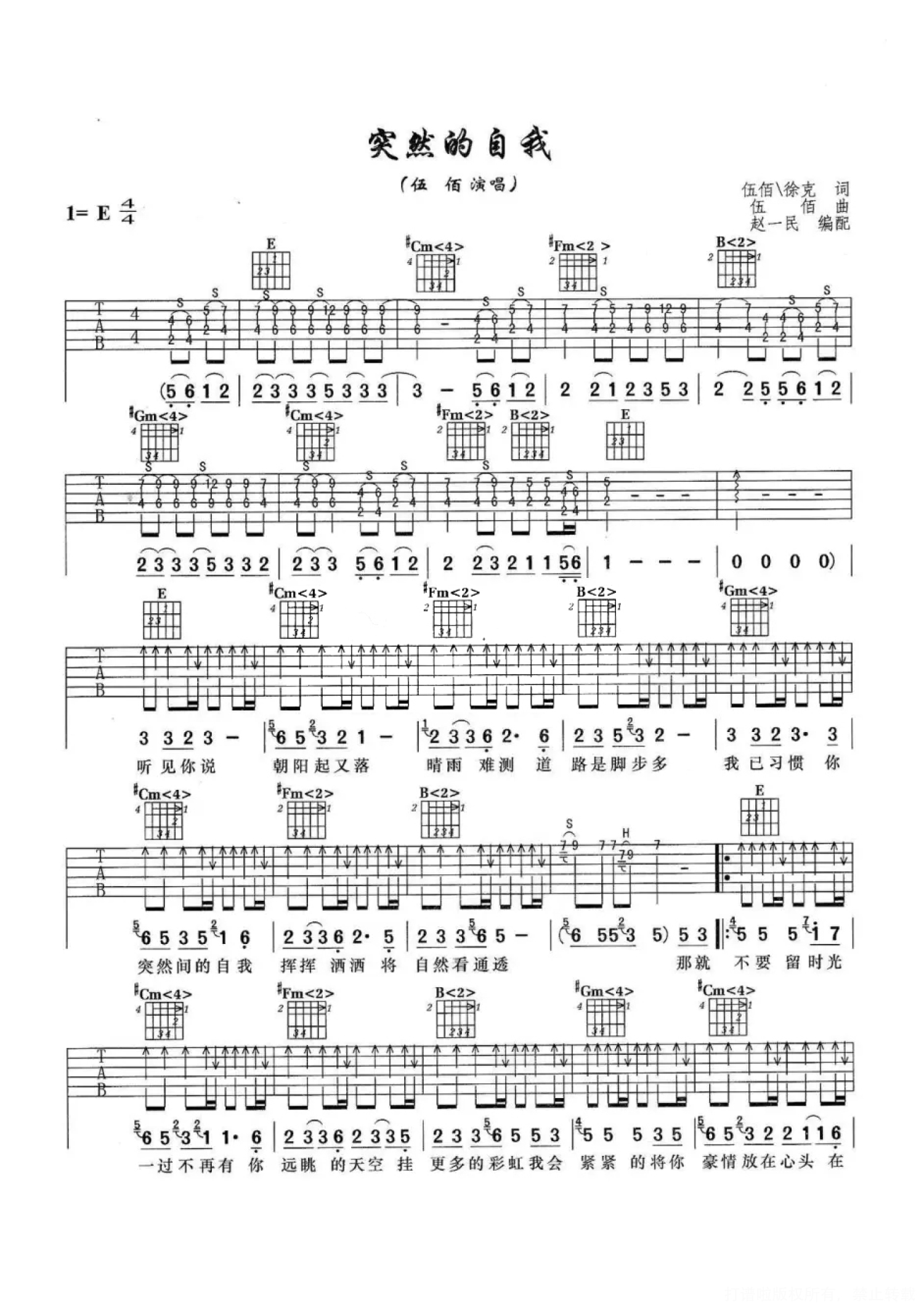 突然的自我吉他谱 - 伍佰 - E调吉他弹唱谱 - 原版编配