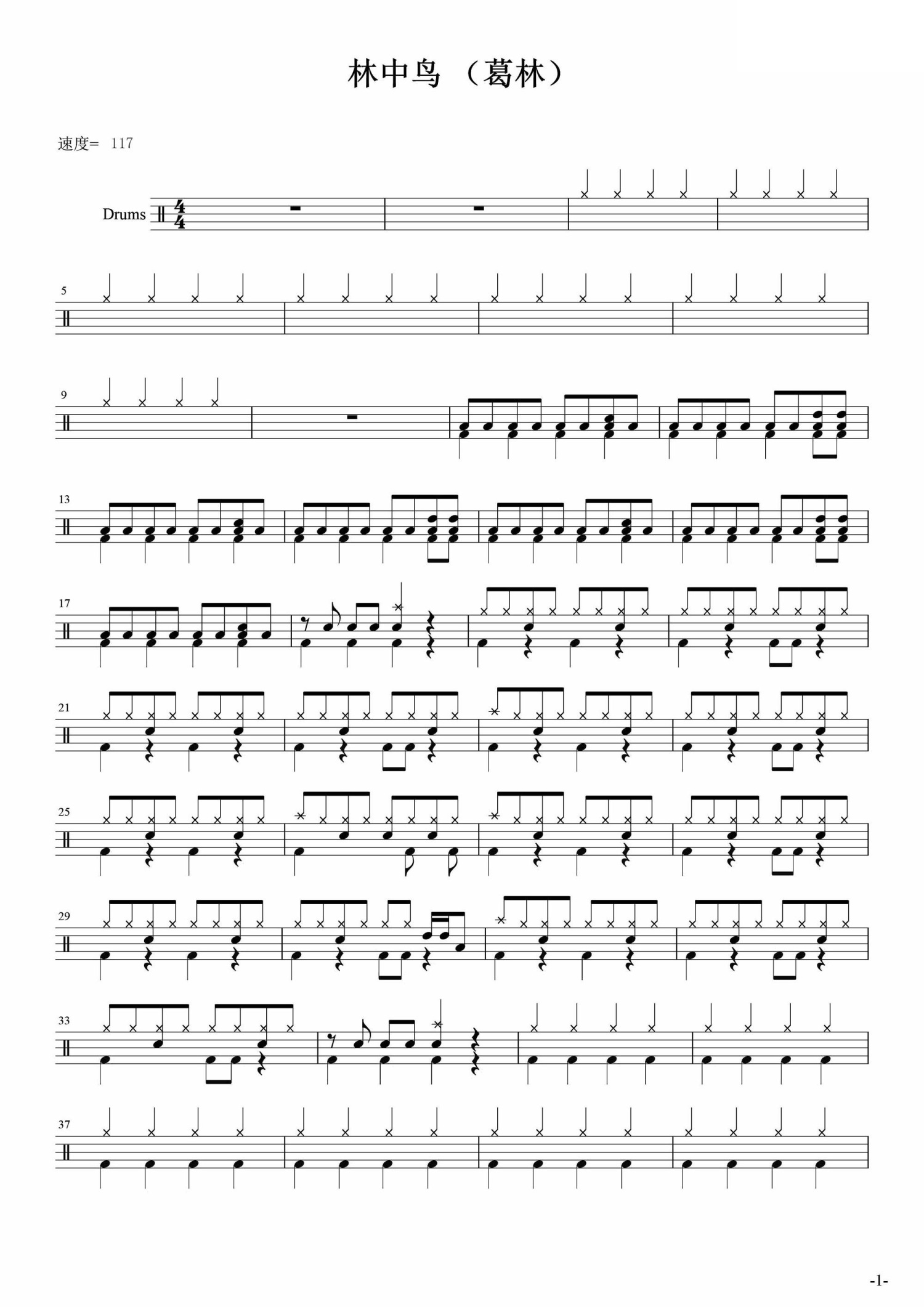 林中鸟鼓谱 - 葛林 - 架子鼓谱