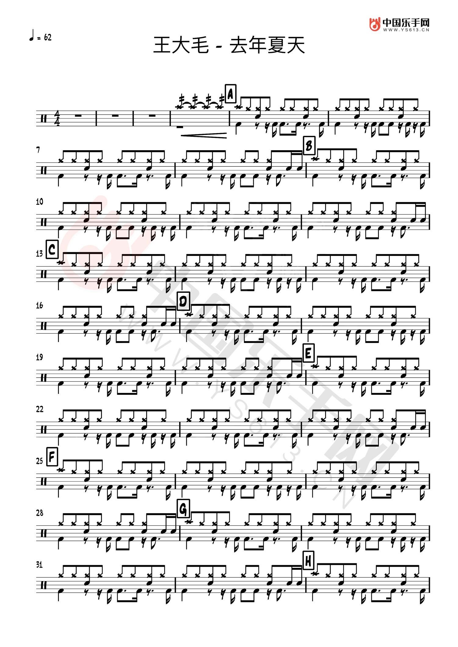 去年夏天鼓谱 - 王大毛 - 架子鼓谱