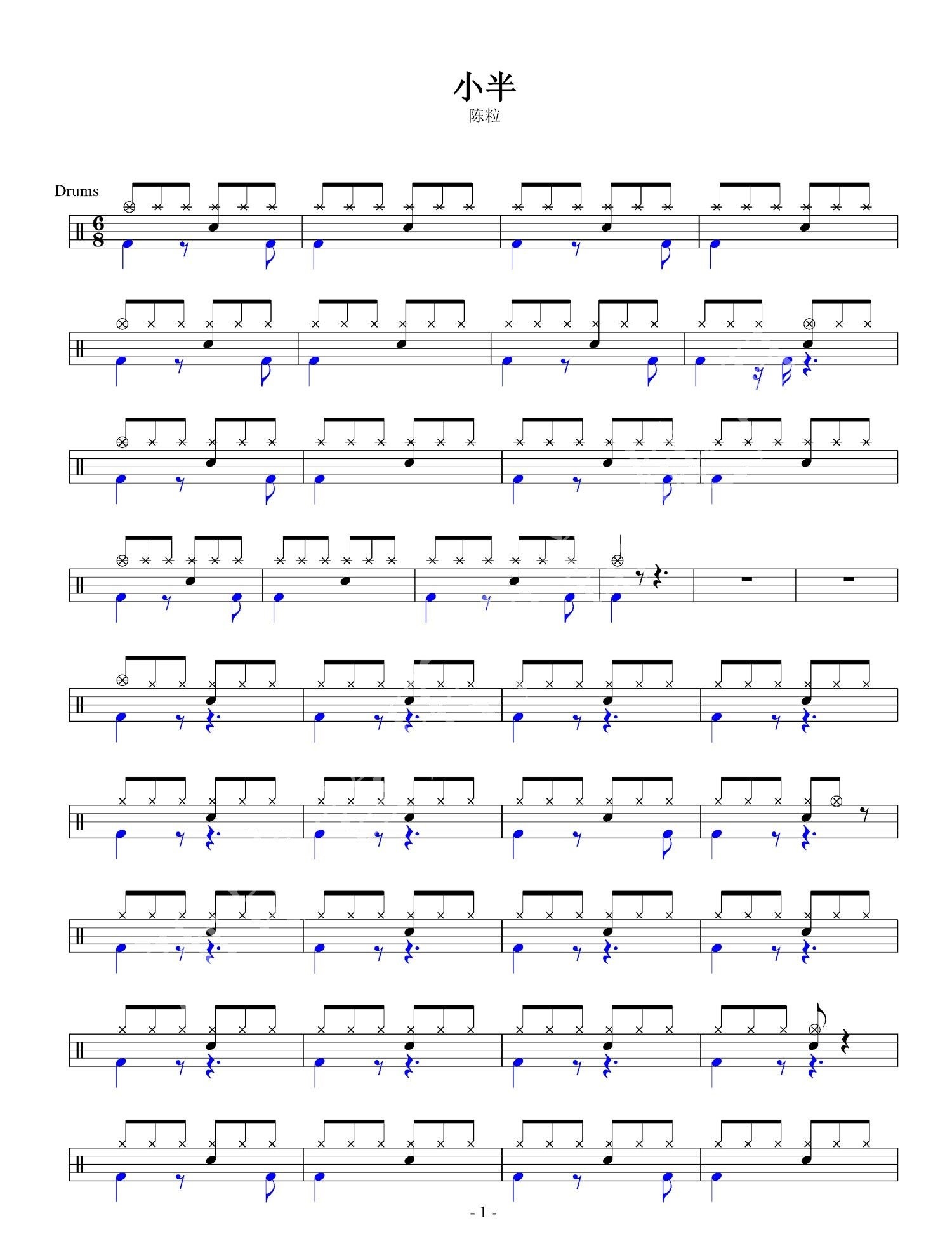 当前位置:琴谱网>架子鼓谱>小半