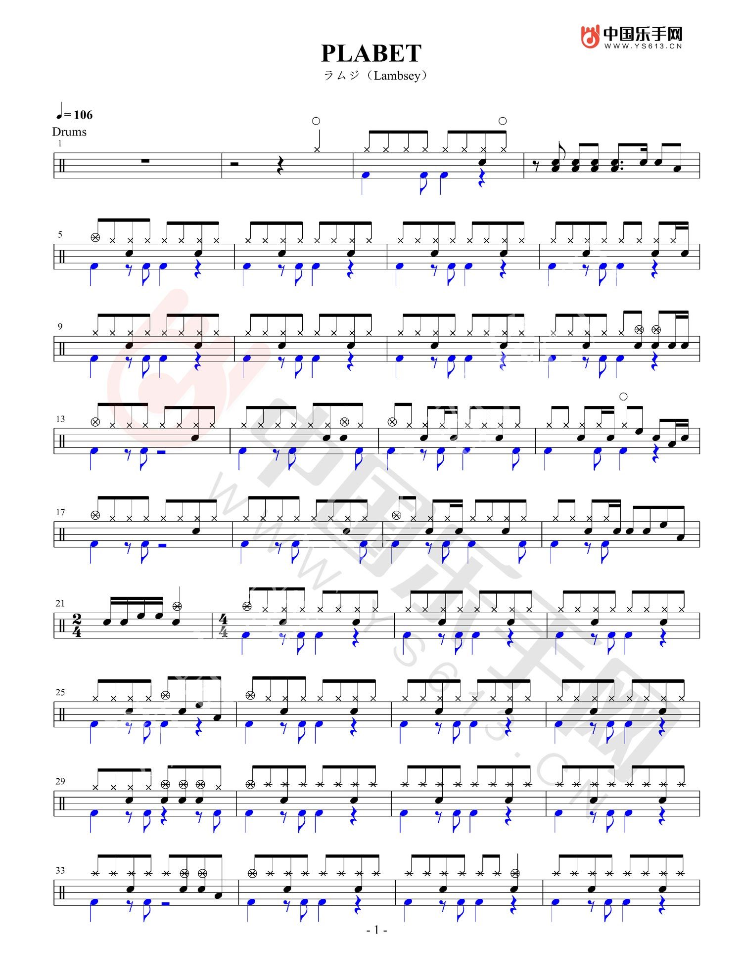 PLABET鼓谱 - ラムジ Lambsey - 架子鼓谱