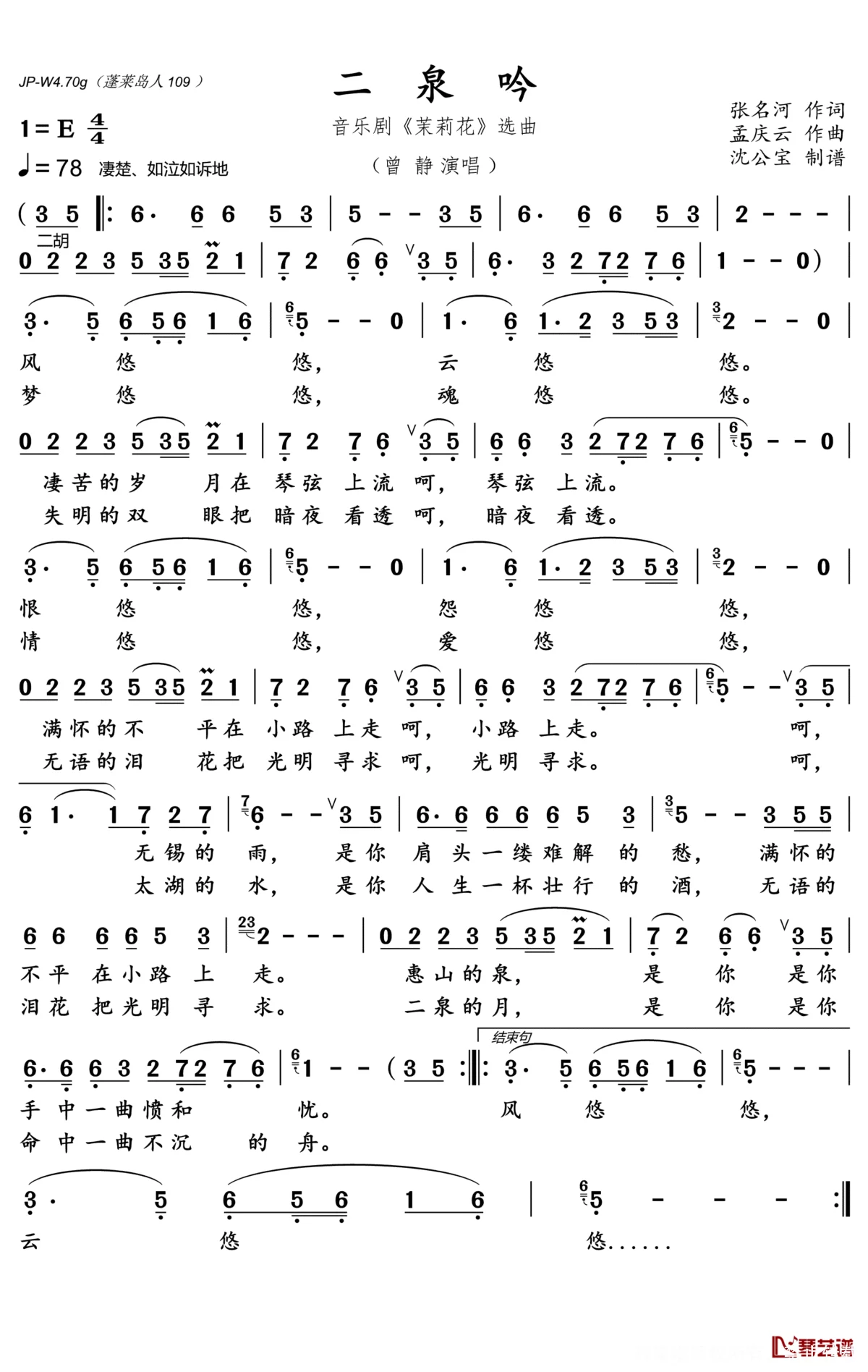 二泉吟简谱 - 茉莉花