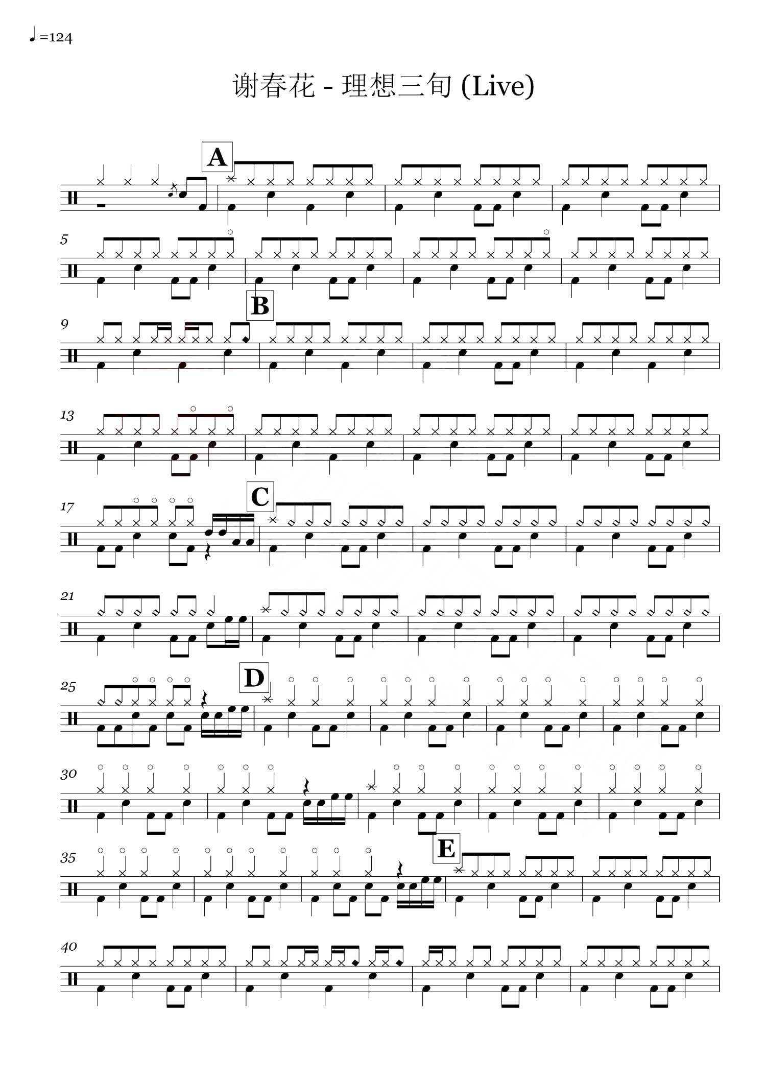理想三旬鼓谱 - 谢春花 - 架子鼓谱