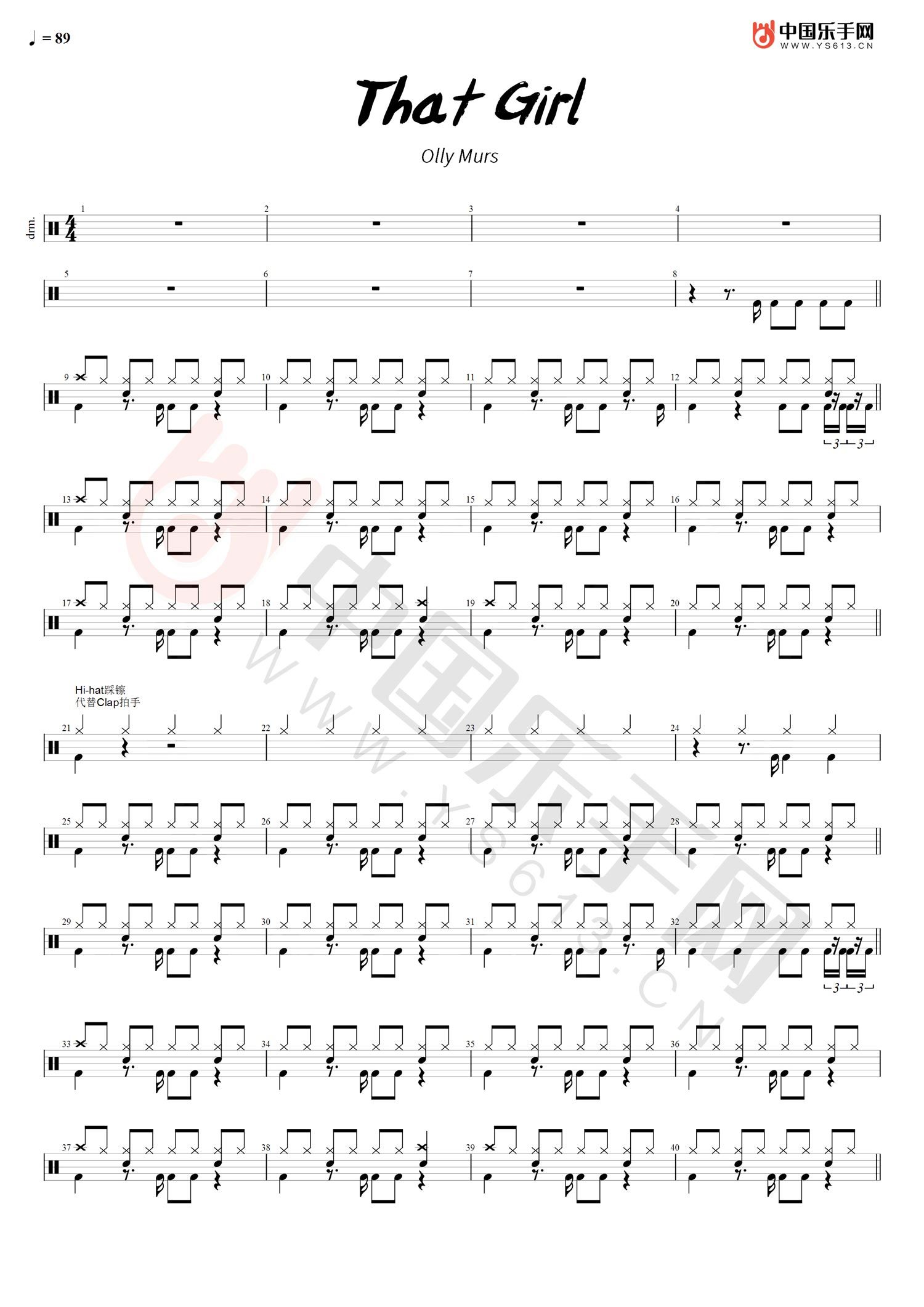 That Girl鼓谱 - olly murs - 架子鼓谱
