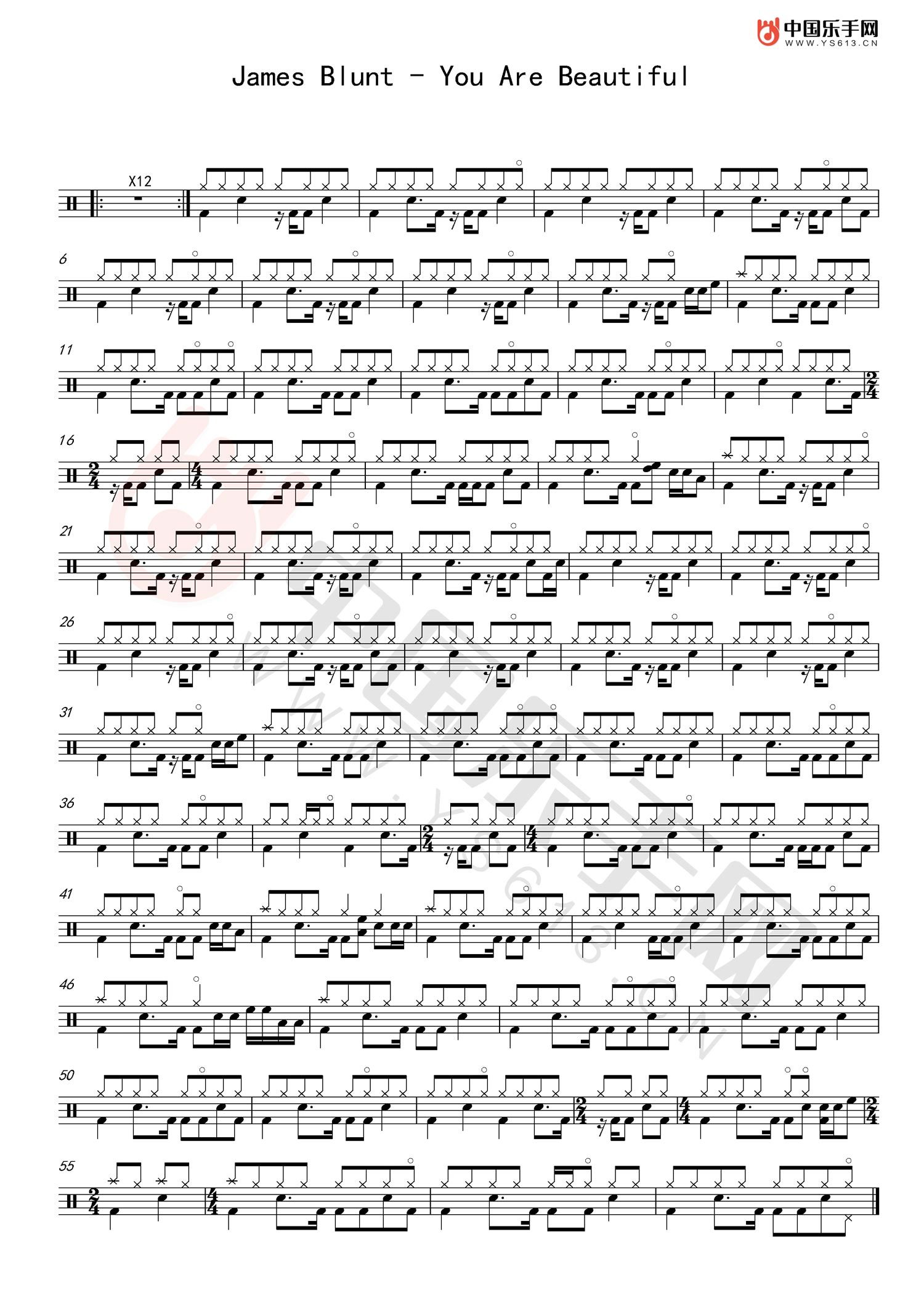 You Are Beautiful鼓谱 - James Blunt - 架子鼓谱