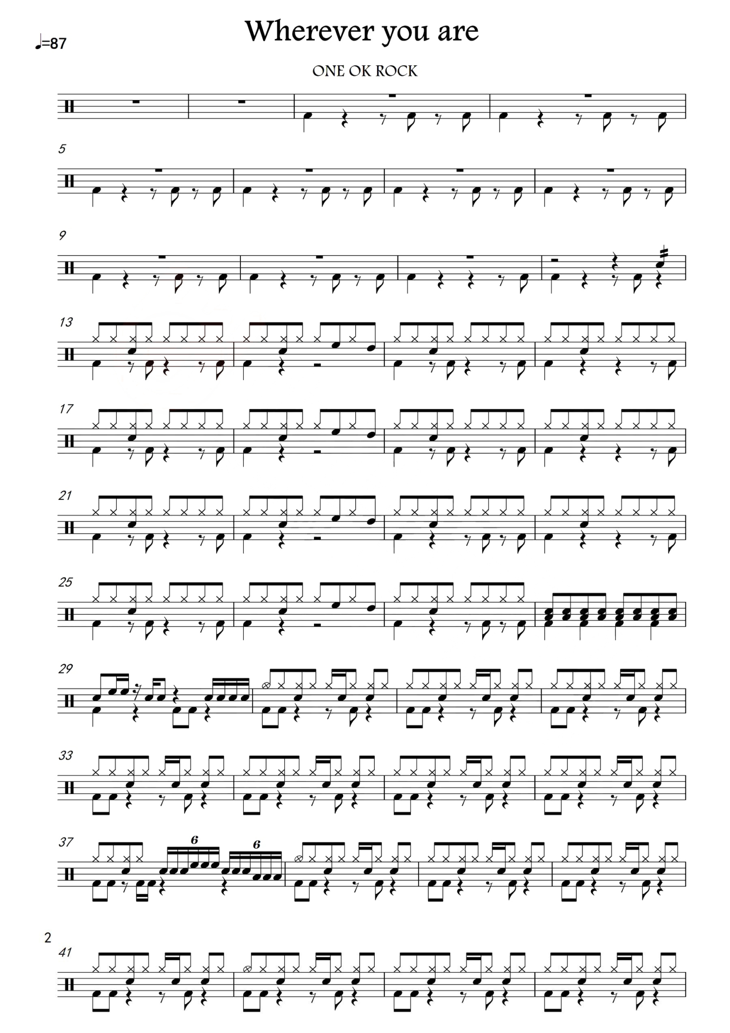 Wherever you are鼓谱 - ONE OK ROCK - 架子鼓谱