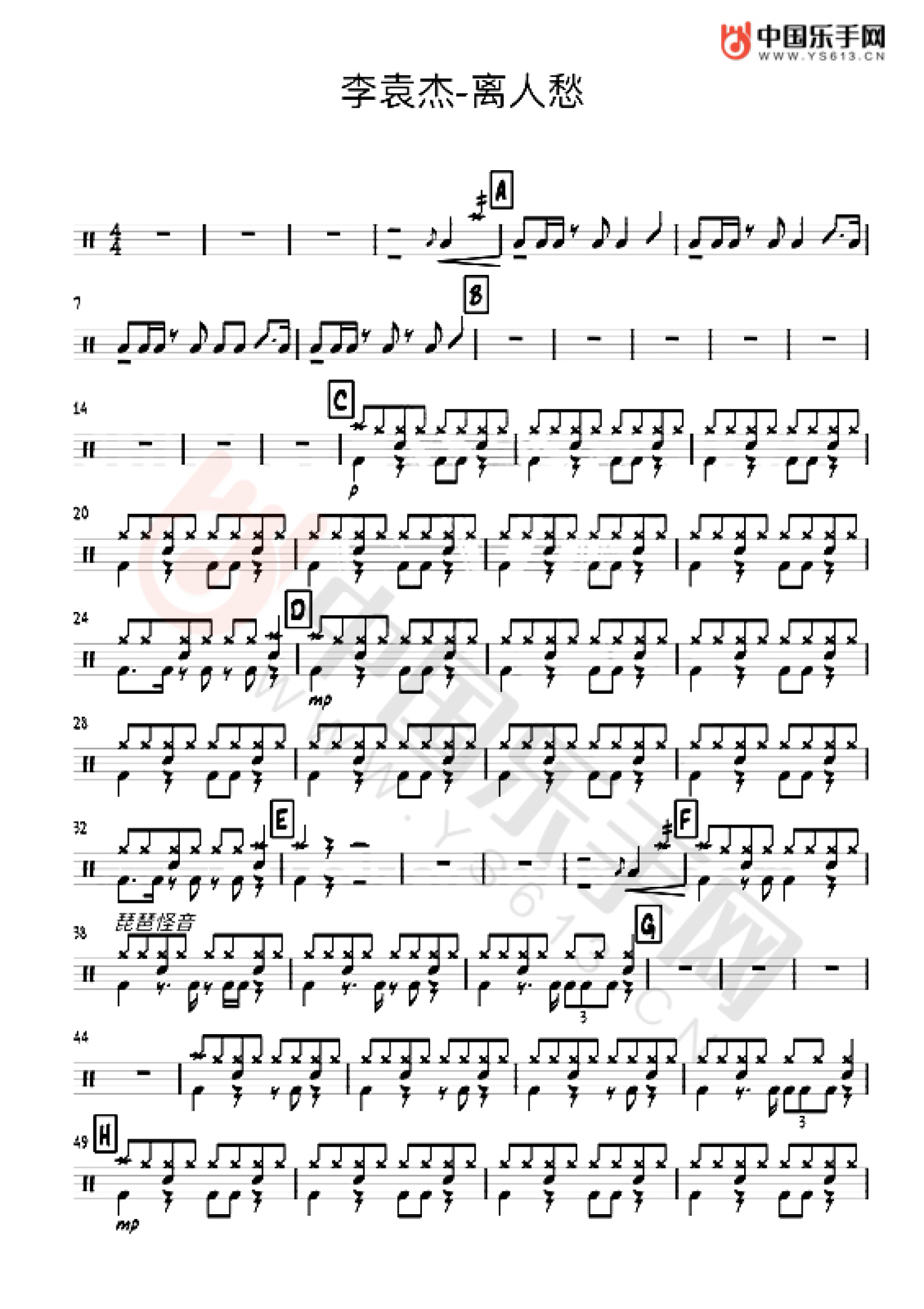 离人愁鼓谱 - 李袁杰 - 架子鼓谱