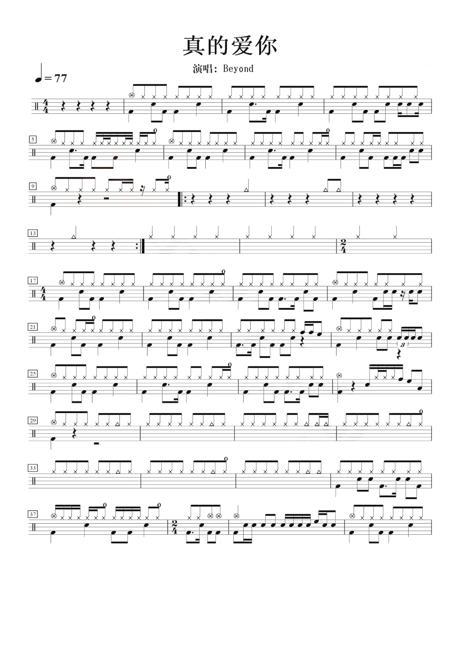 真的爱你鼓谱 - beyond乐队 - 架子鼓谱
