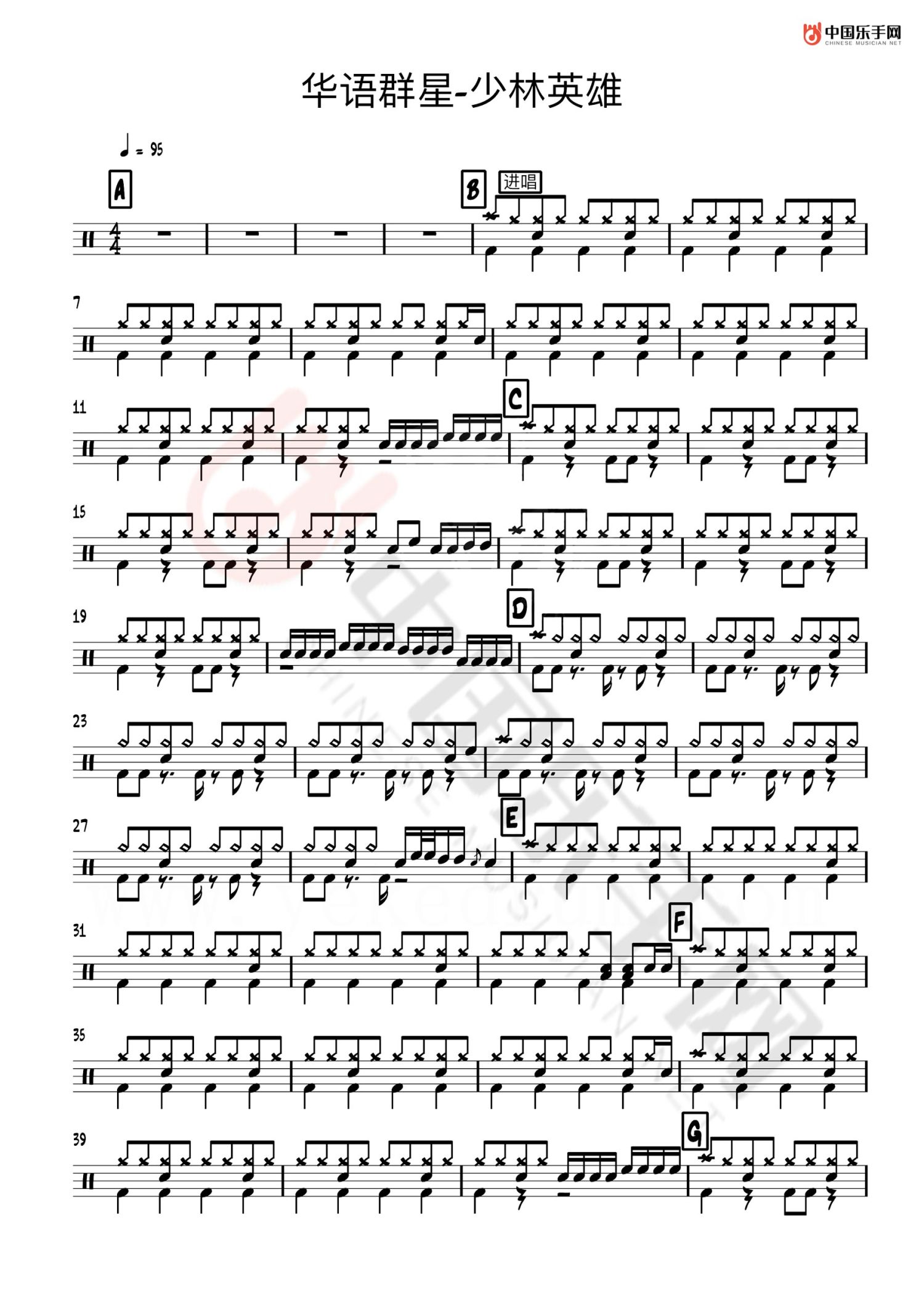 少林英雄鼓谱 - 华语群星 - 架子鼓谱