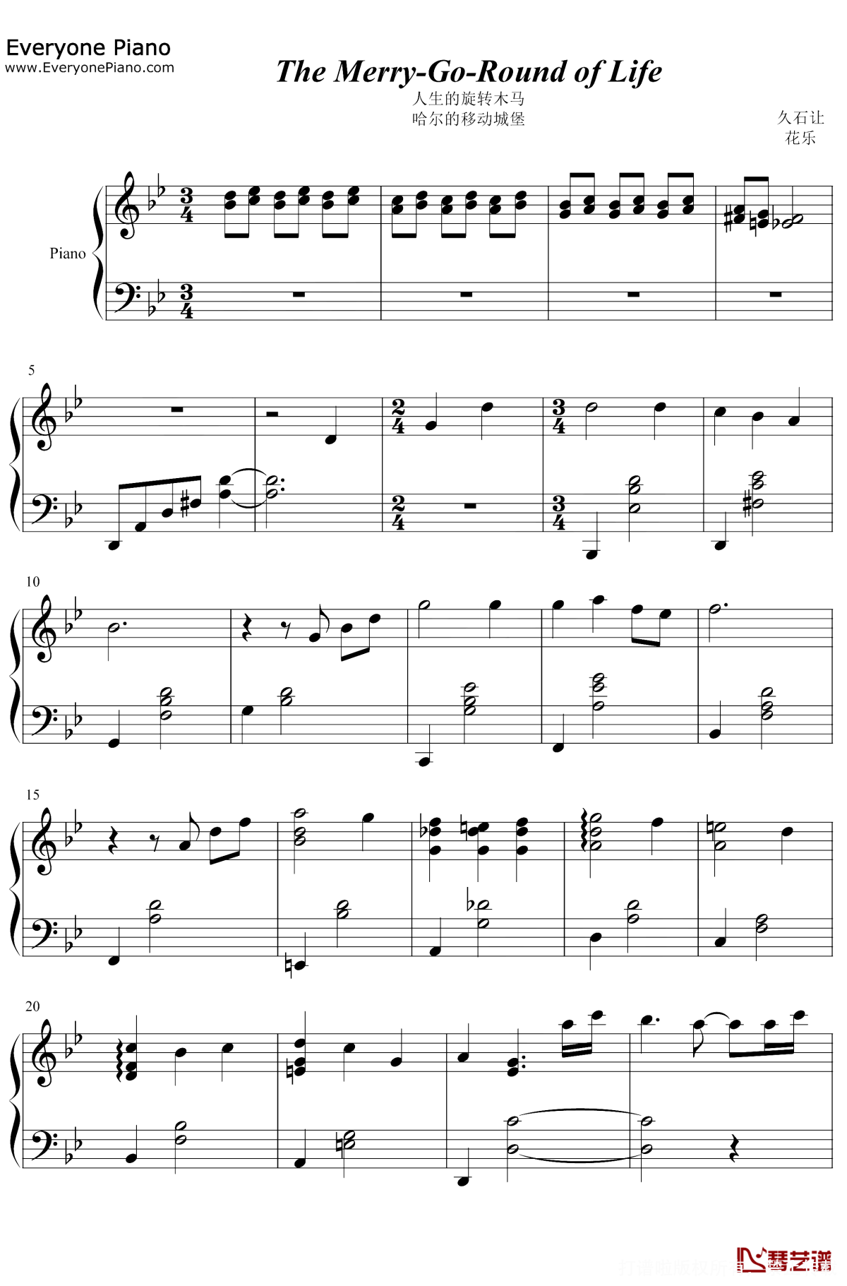 人生的旋转木马钢琴谱 - 久石让 - 人生のメリーゴーランド