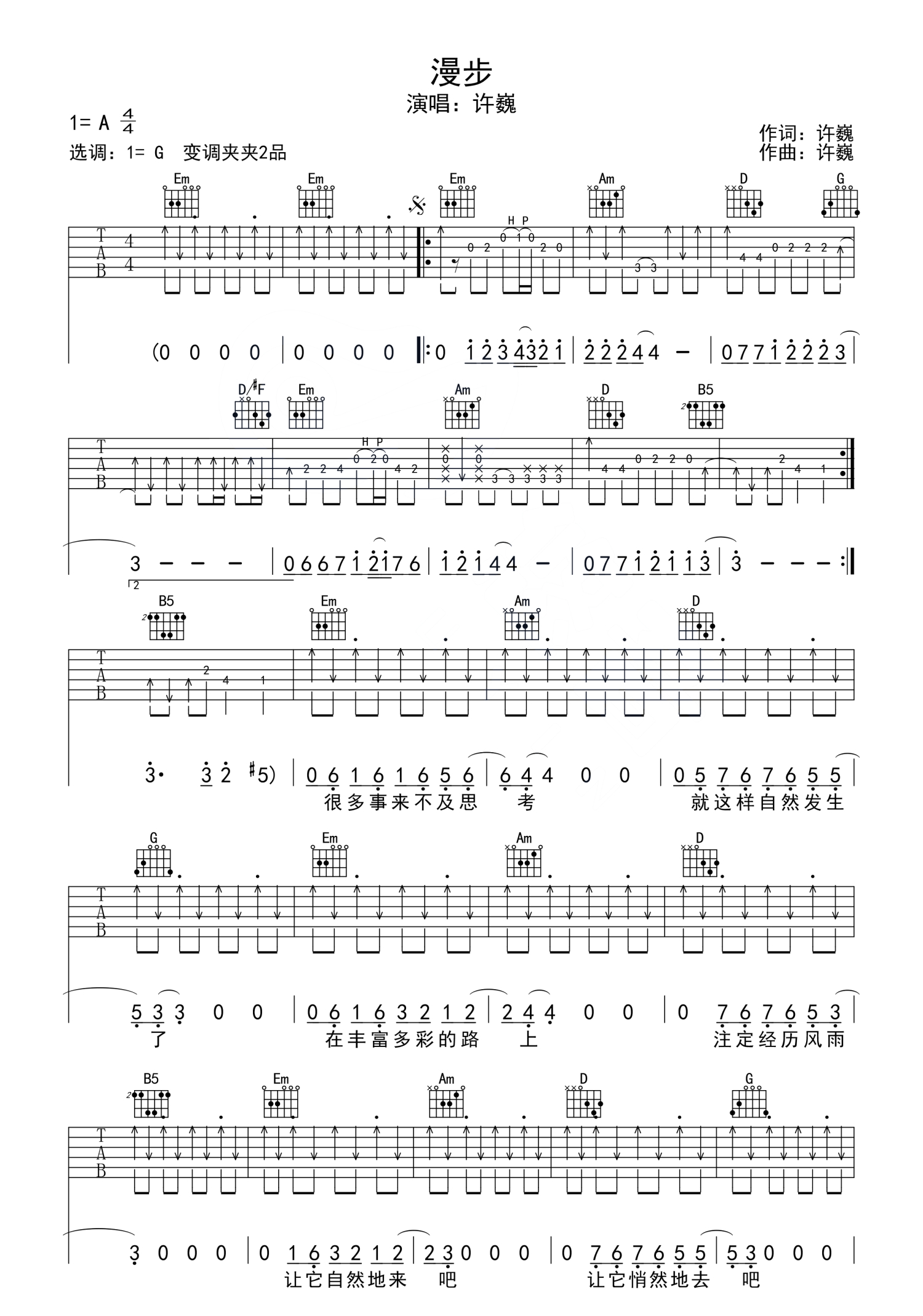 • 漫步吉他谱 - 许巍 - G调吉他弹唱谱第1张