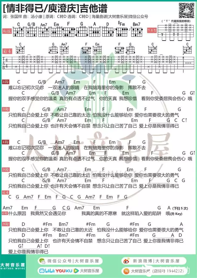 曲谱介绍: 庆《情非得已》吉他弹唱谱,共有1张高清图谱,免翻页排版设计。