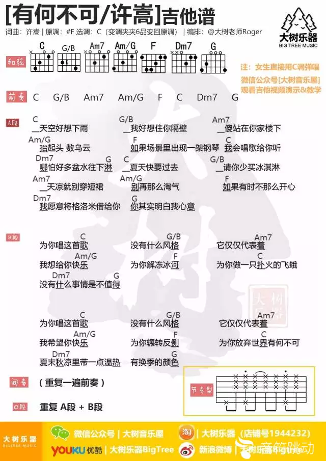 有何不可吉他谱 - 许嵩 - C调吉他弹唱谱