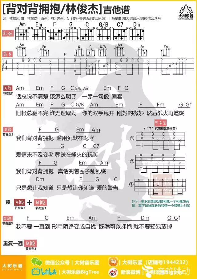 曲谱介绍: 林俊杰《背对背拥抱》吉他弹唱谱,共有1张高清图谱,免翻页排版设计。