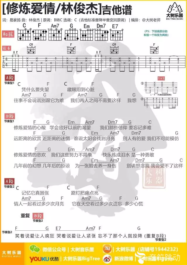 曲谱介绍: 林俊杰《修炼爱情》吉他弹唱谱,共有1张高清图谱,免翻页排版设计。