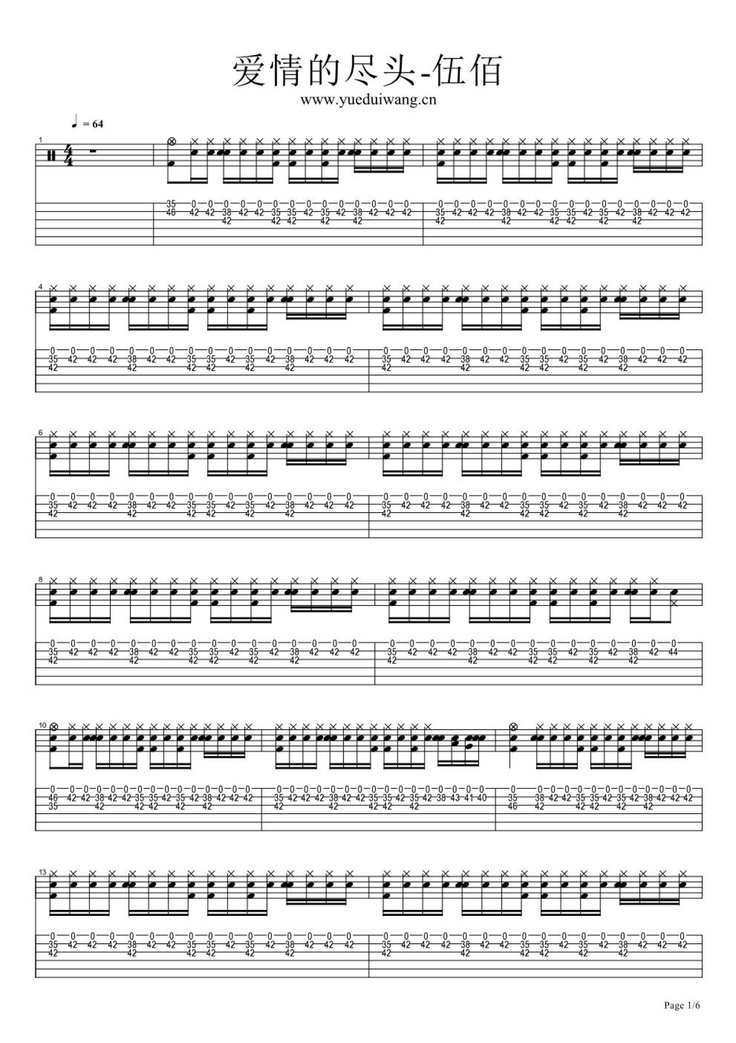 曲谱介绍: 爱情的尽头(架子鼓谱)-伍佰