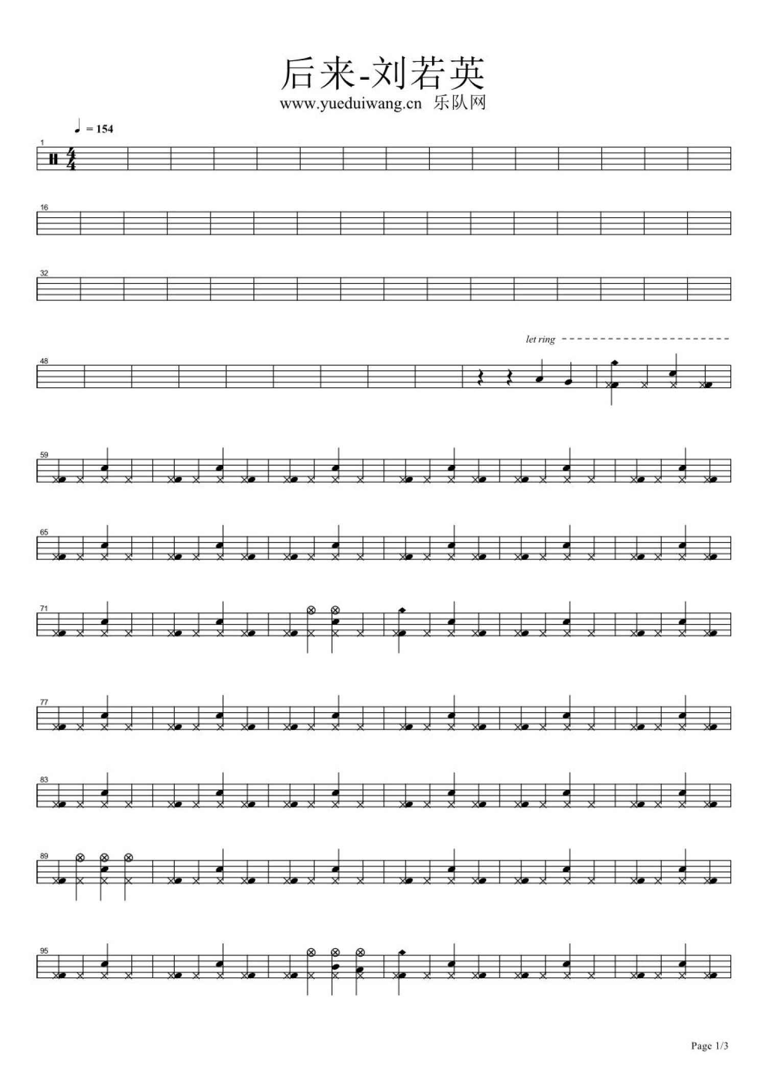 当前位置:琴谱网>架子鼓谱>后来