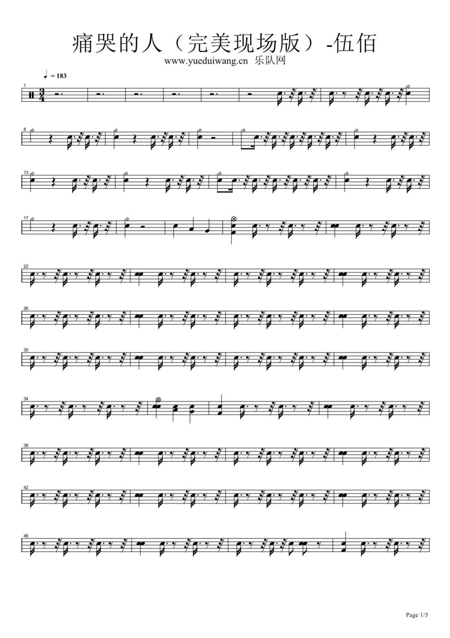 曲谱介绍: 伍佰-痛哭的人(架子鼓谱)-伍佰
