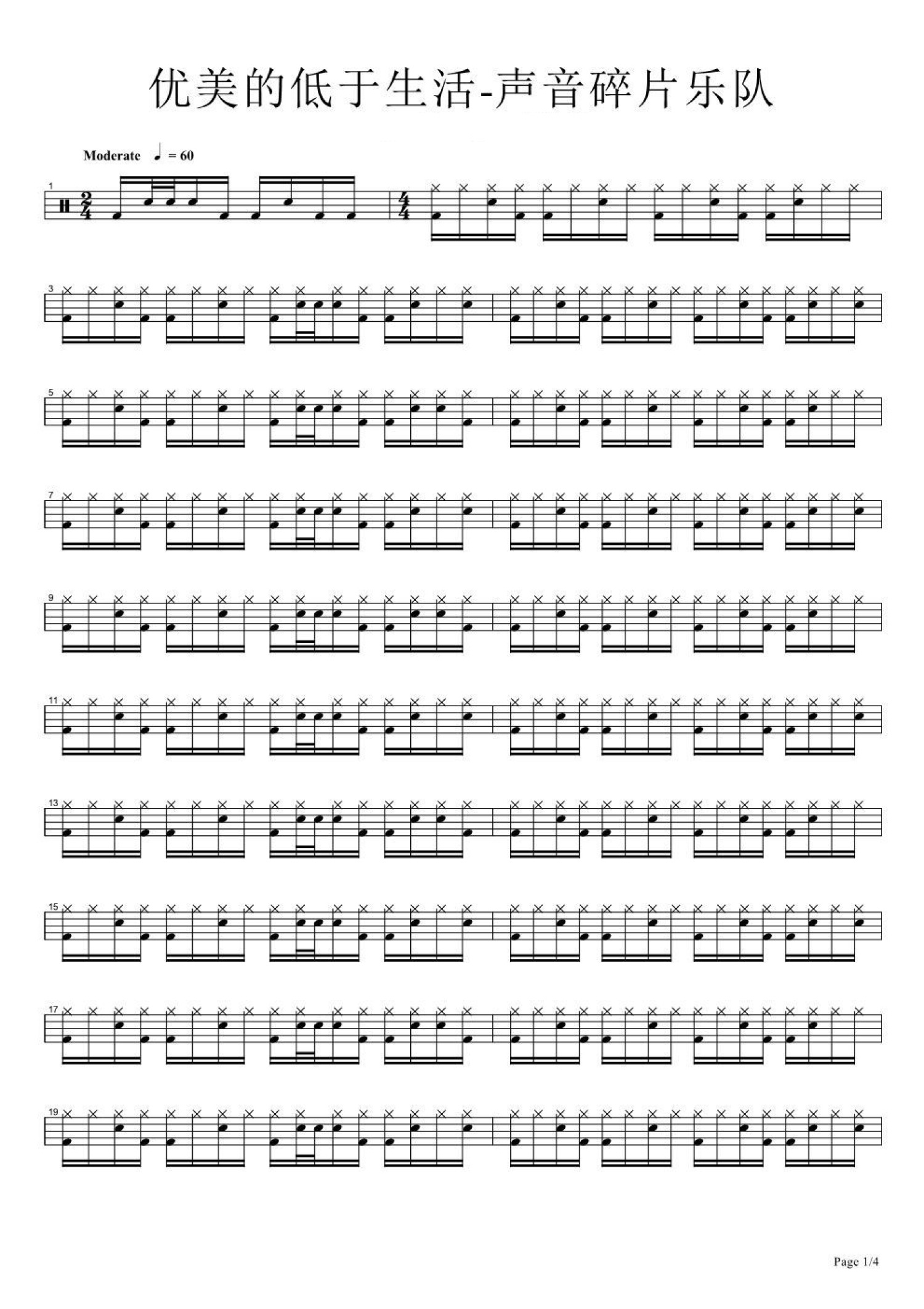 曲谱介绍: 优美的低于生活(架子鼓谱)-声音碎片乐队