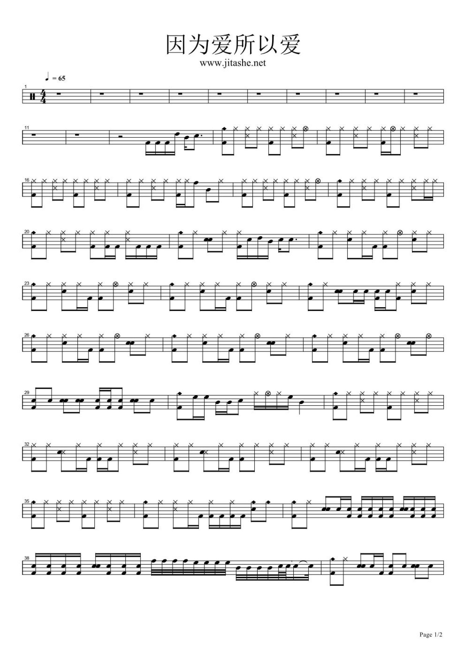 当前位置:琴谱网>架子鼓谱>因为爱所以爱